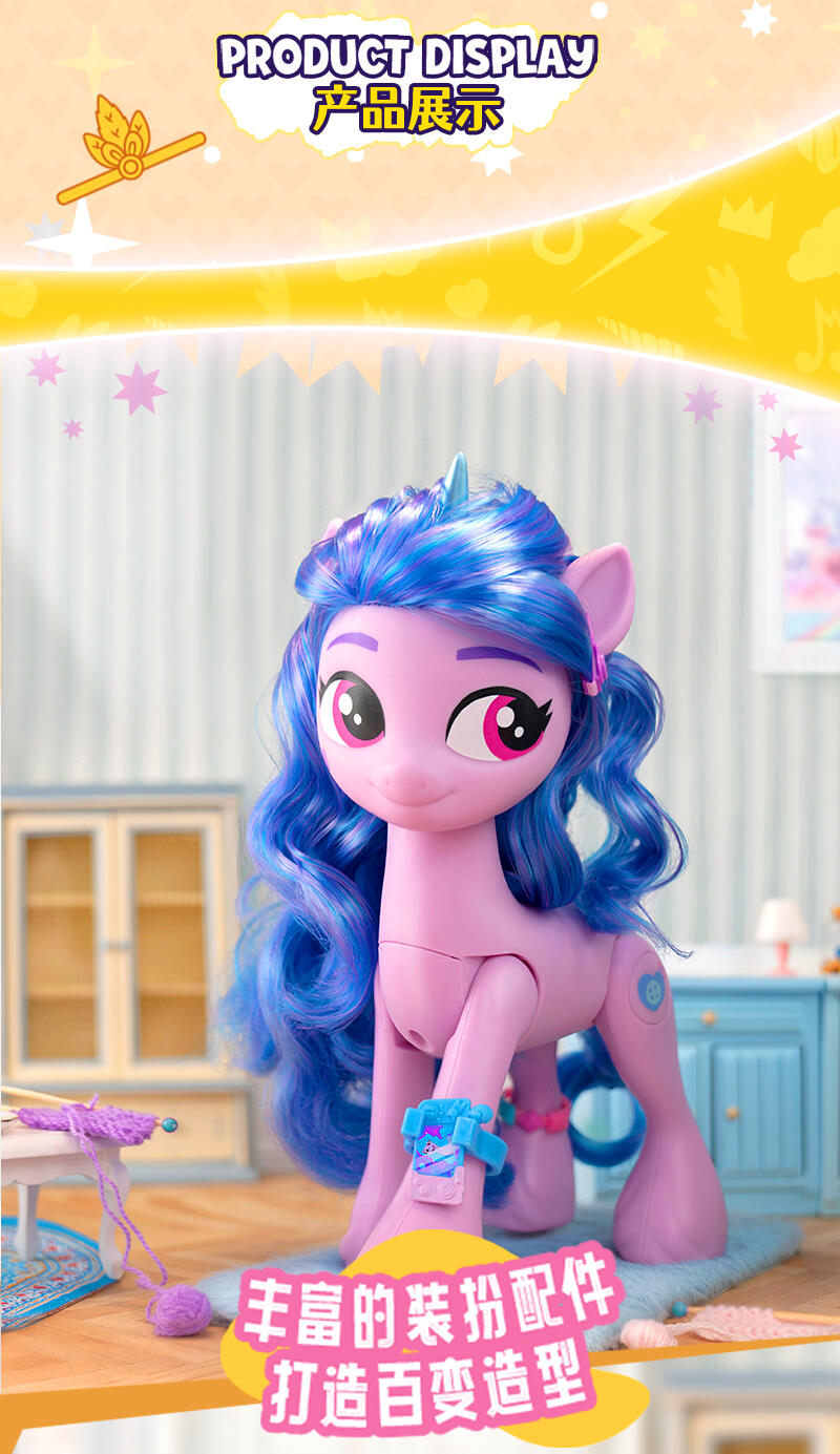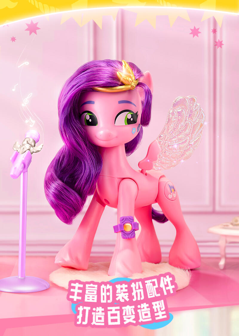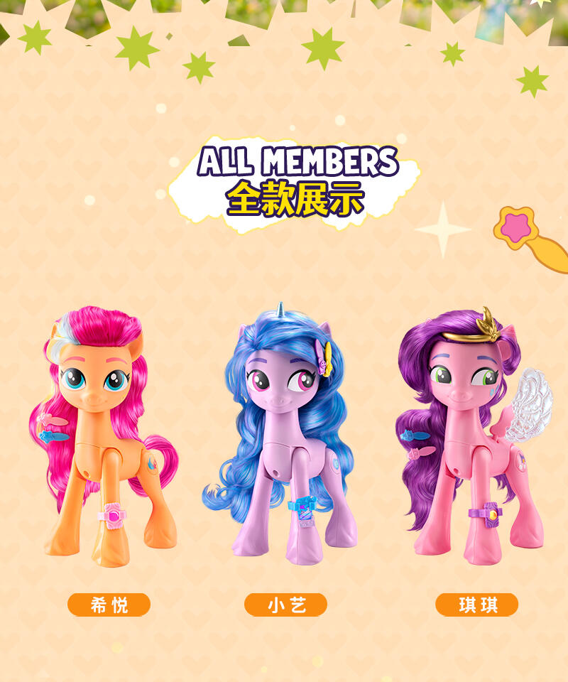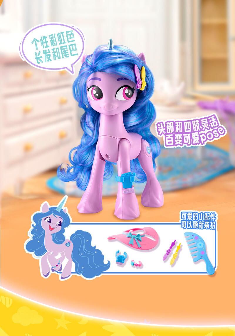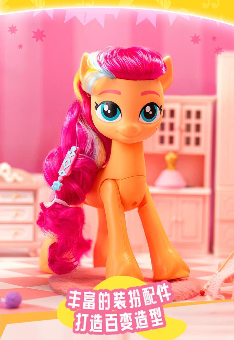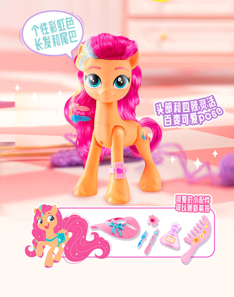 20cm可动小马宝莉可动公仔,头部/四肢/尾巴灵活可动,多彩靓发加上丰富的装扮配件,快来装扮你的专属小马宝莉吧!