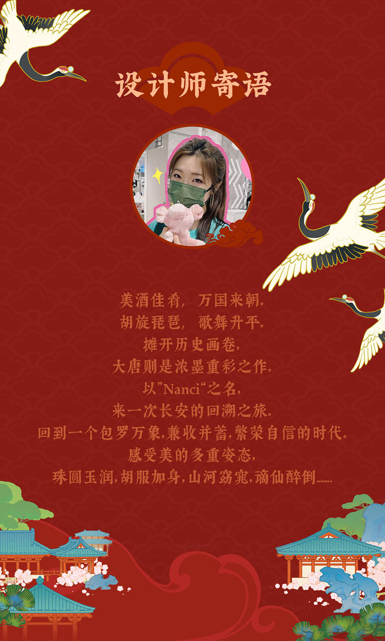美酒佳肴,万国来朝,胡旋琵琶,歌舞升平。揭开历史画卷,大唐则是浓墨重彩之作,以Nanci之名,来一次长安的回溯之旅。