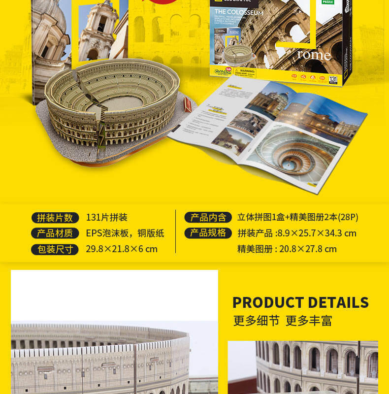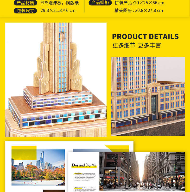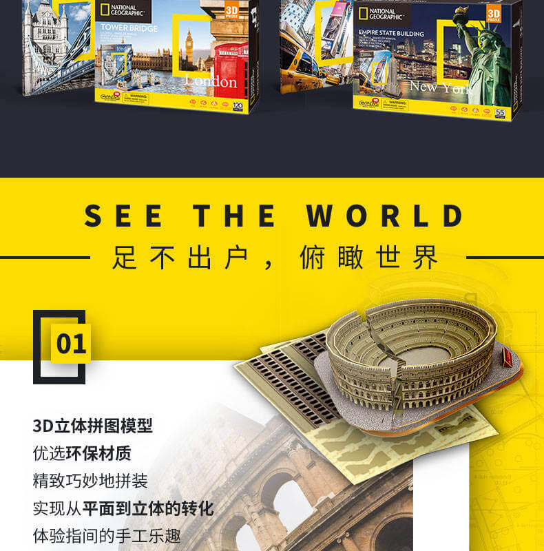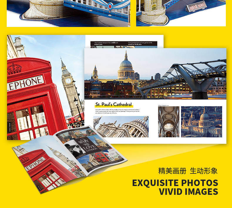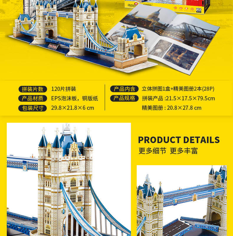 3D立体拼图伦敦双子。120片装产品的材质为EPS泡沫板铜板纸,适合五岁及以上小朋友使用,无需胶水即可粘合