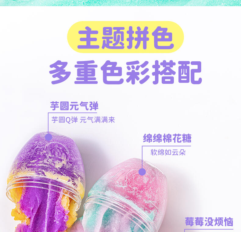 1、反复拉伸,蓬松质感,拉伸卷花,按压揉捏变紧实_x005f 2、一罐两色,混出新色,满足好奇获得乐趣