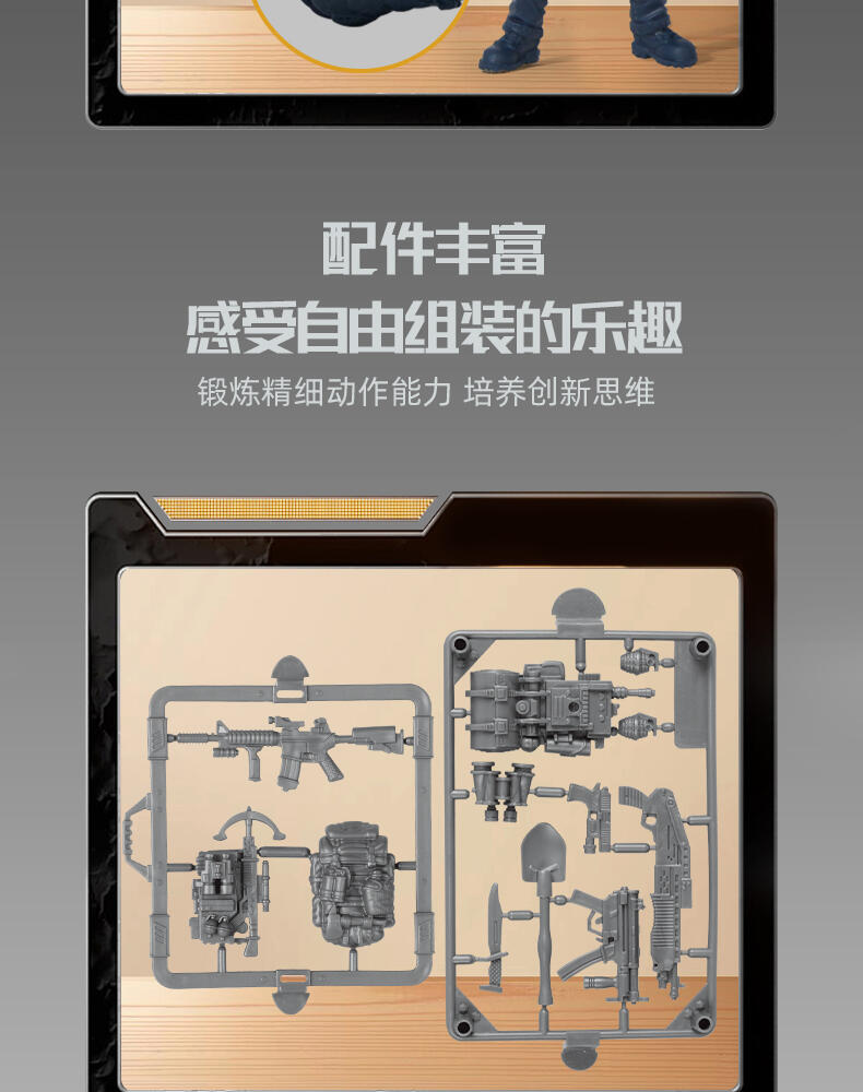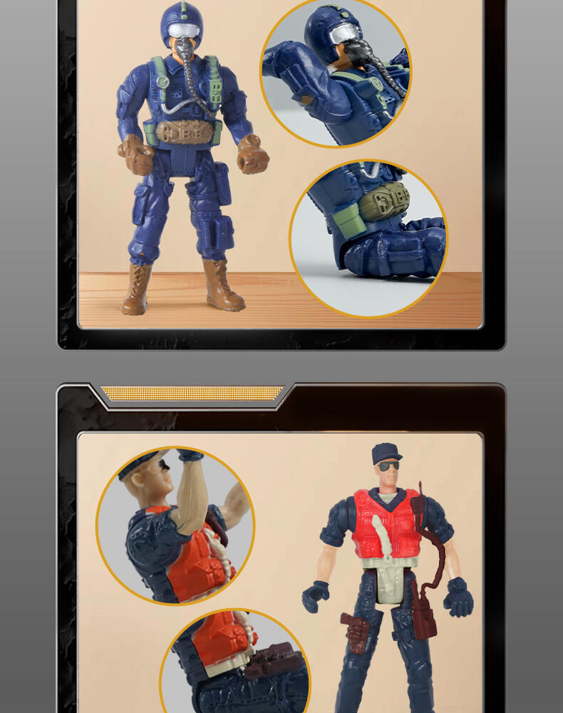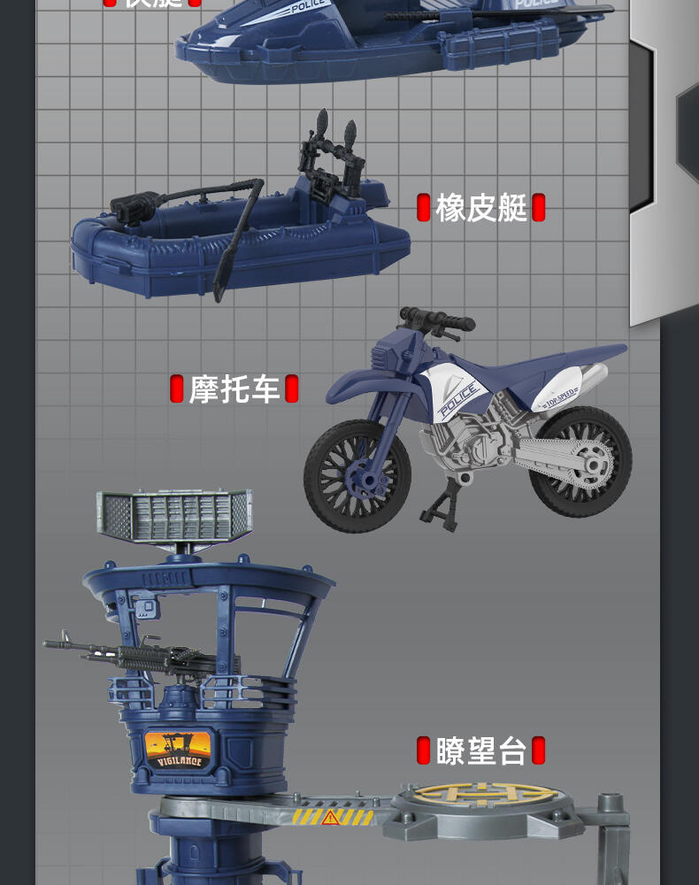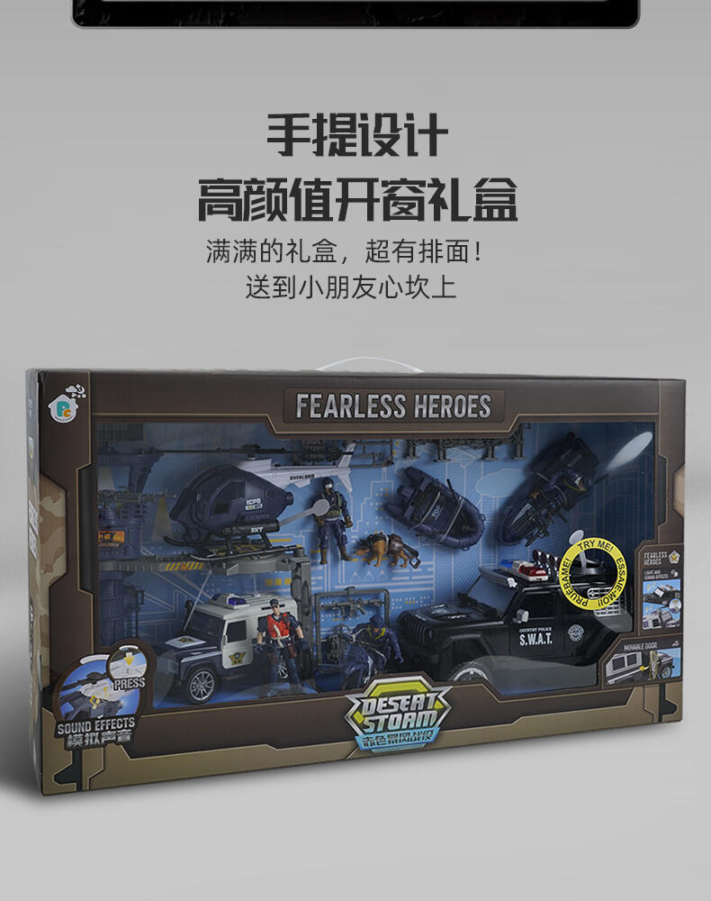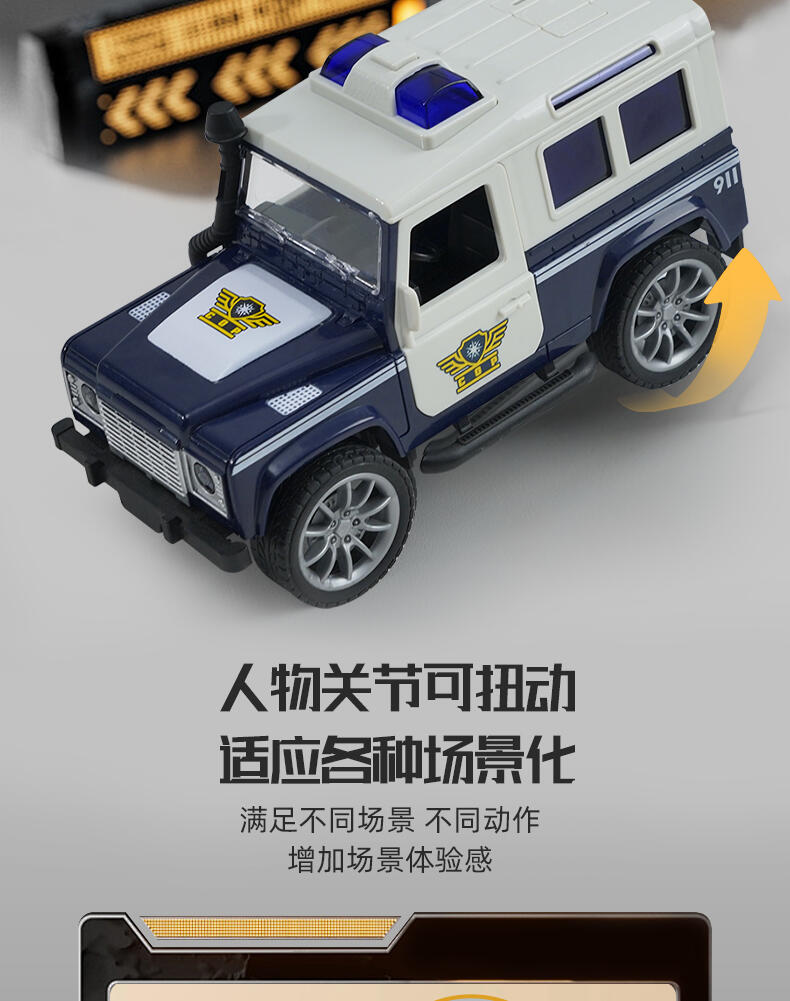 仿真军事模型,多款场景配件,自由搭配独特战斗场景,深入体验,仿真汽车音效,让战场效果更为逼真,人物关节可动,可根据场景摆出合适的动作,增加场景体验