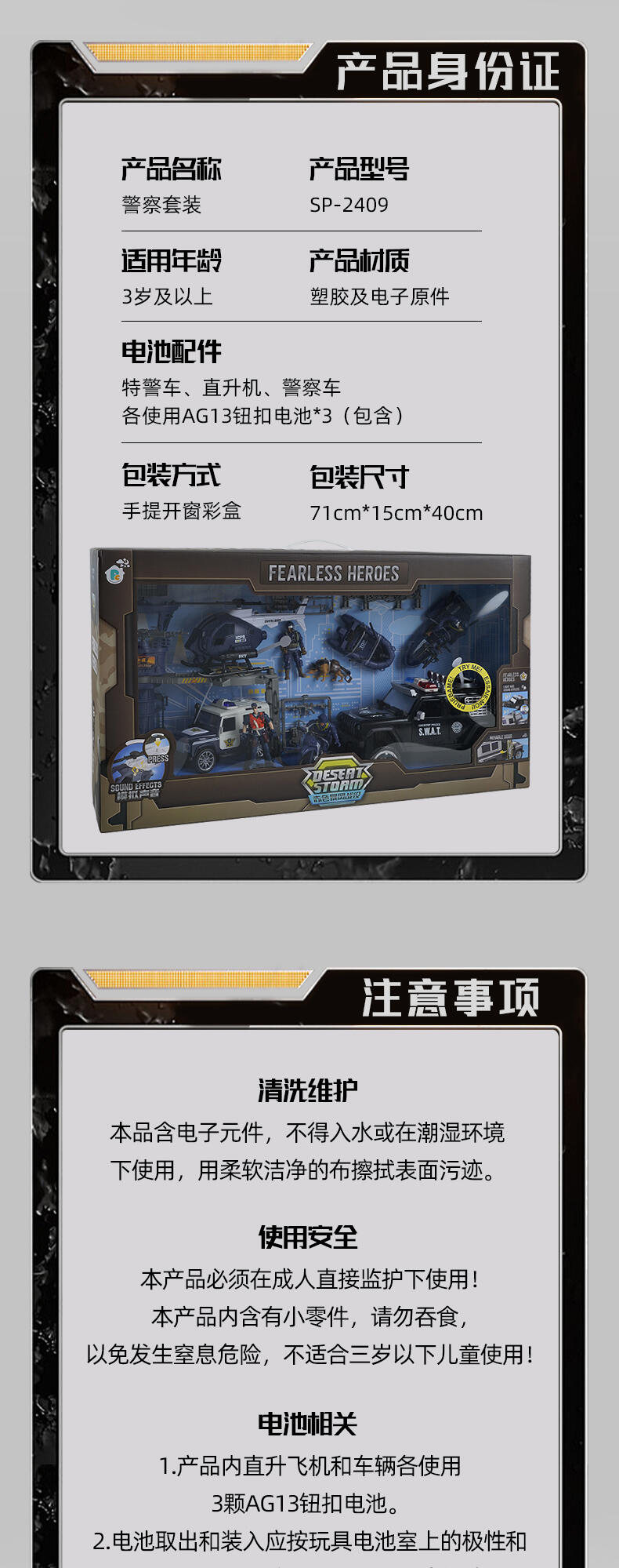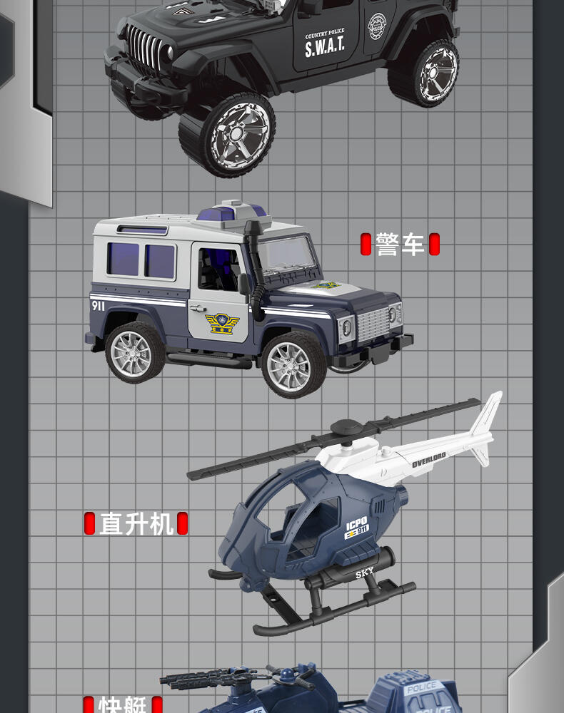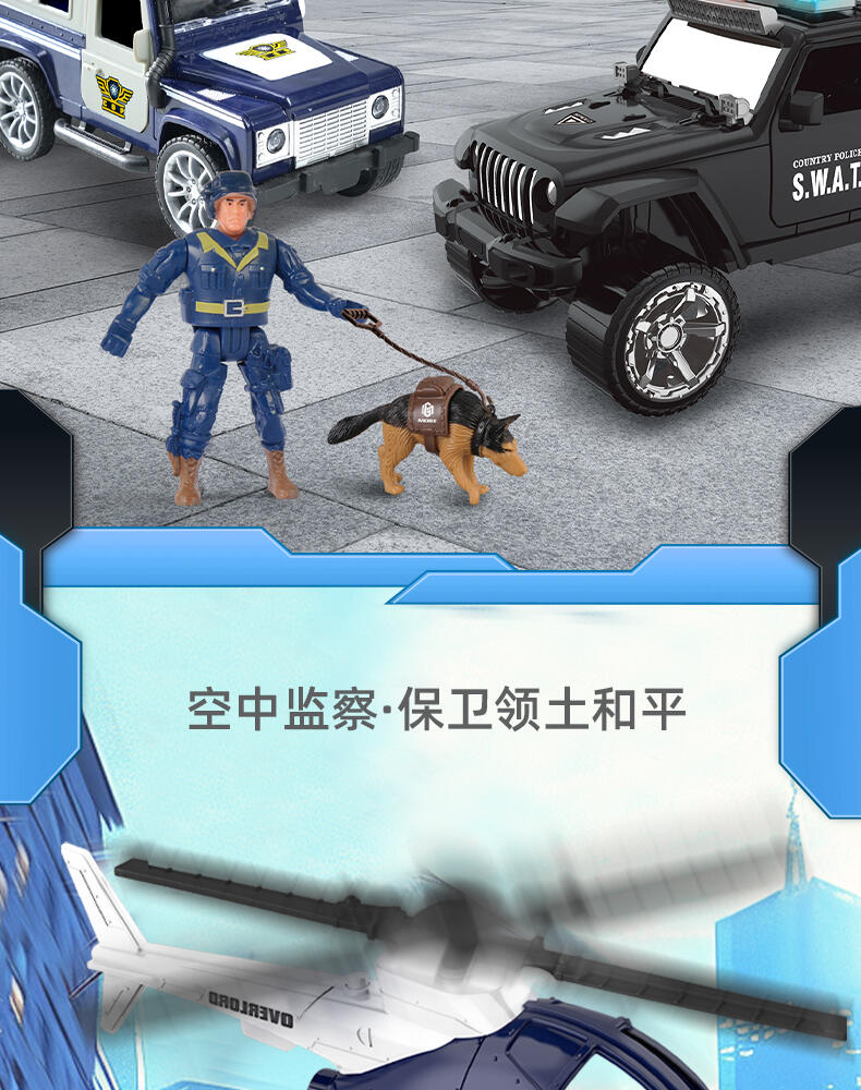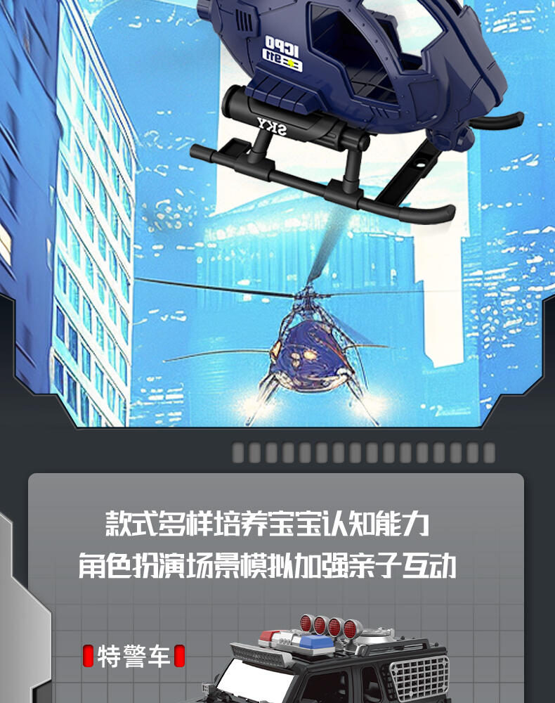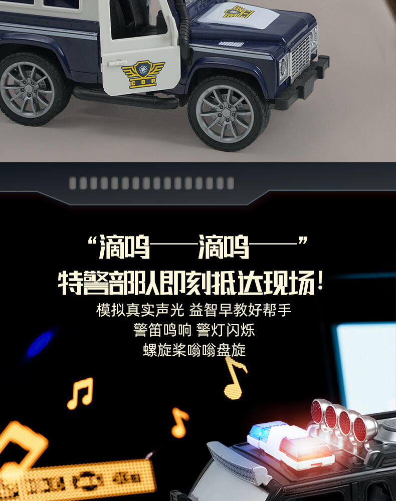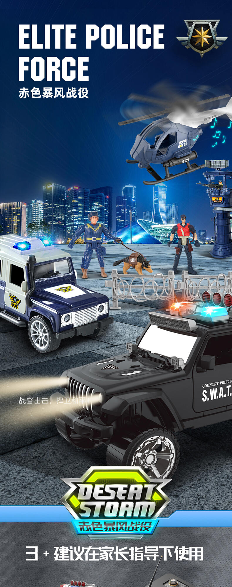 皮恩希 警察套装配模型飞机 滑行车带灯光声音