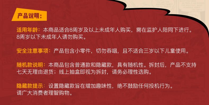 本产品包括不同颜色、款式或人物角色。每个款式单独发售并随机发货。