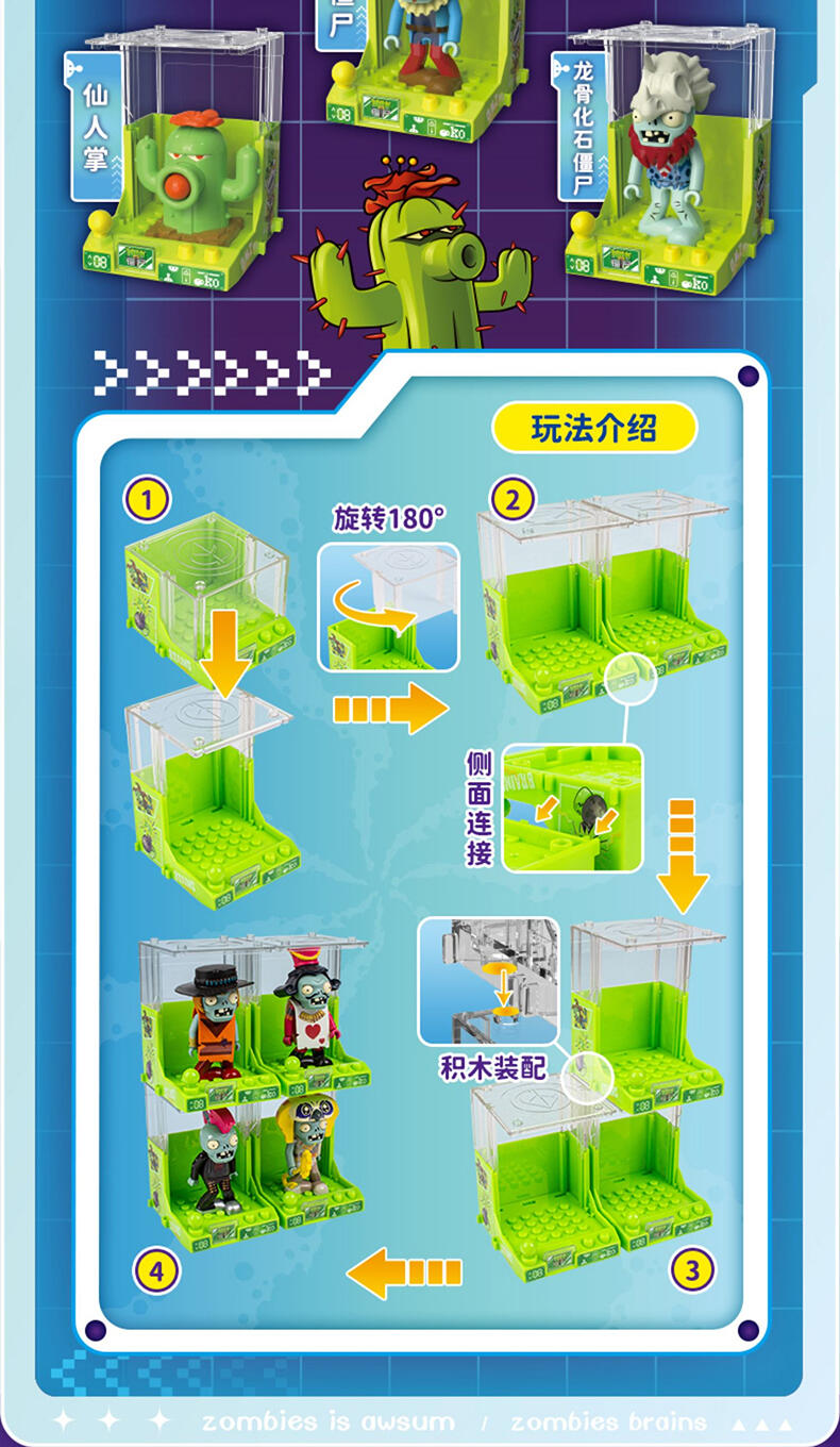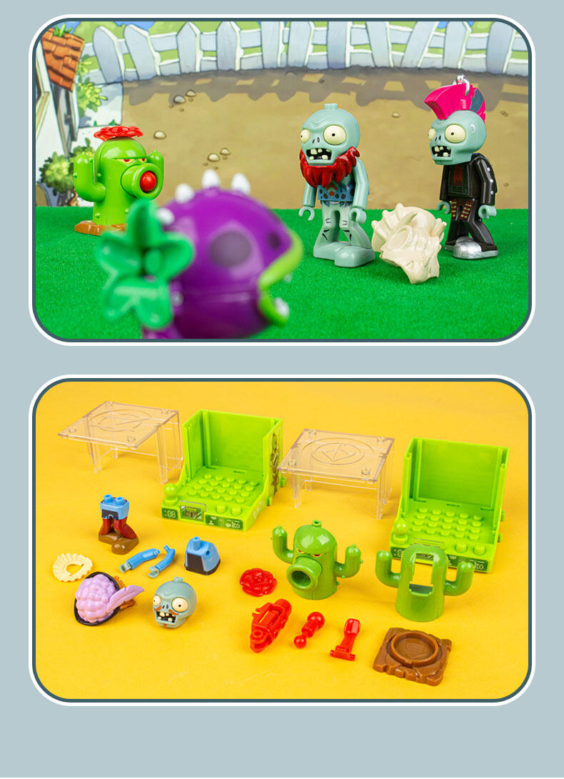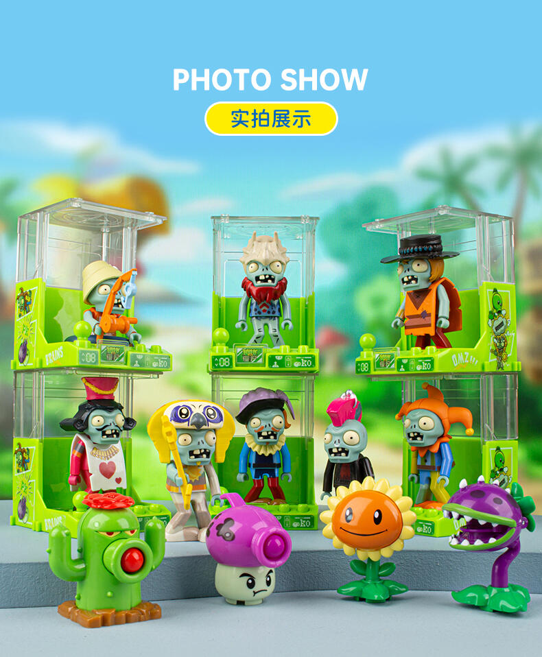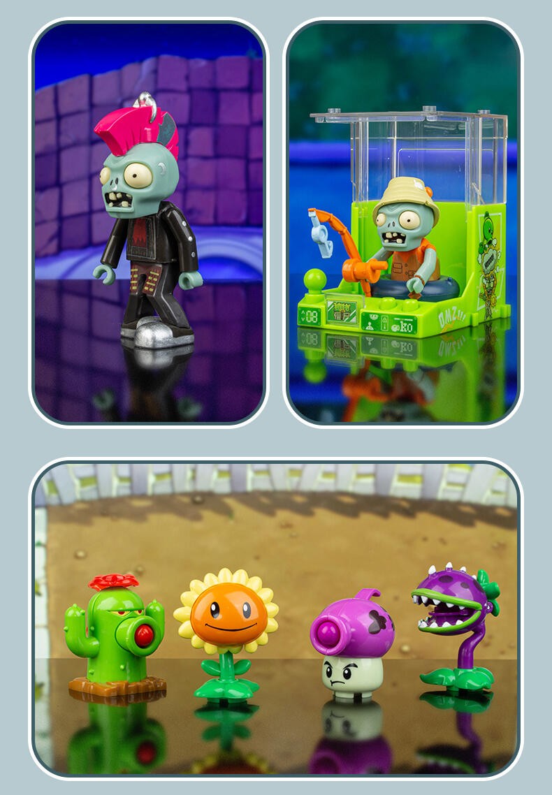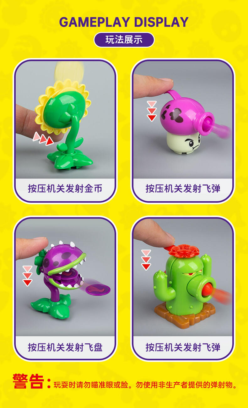 还原动画片角色人偶造型,居家、车载摆设玩偶,普通款抽取比例为1/12,没有隐藏款,植物形象均有弹射功能,外盒可进行积木拼搭联动玩法,