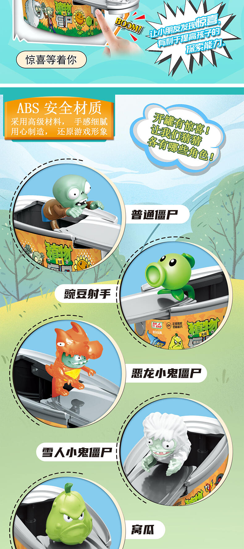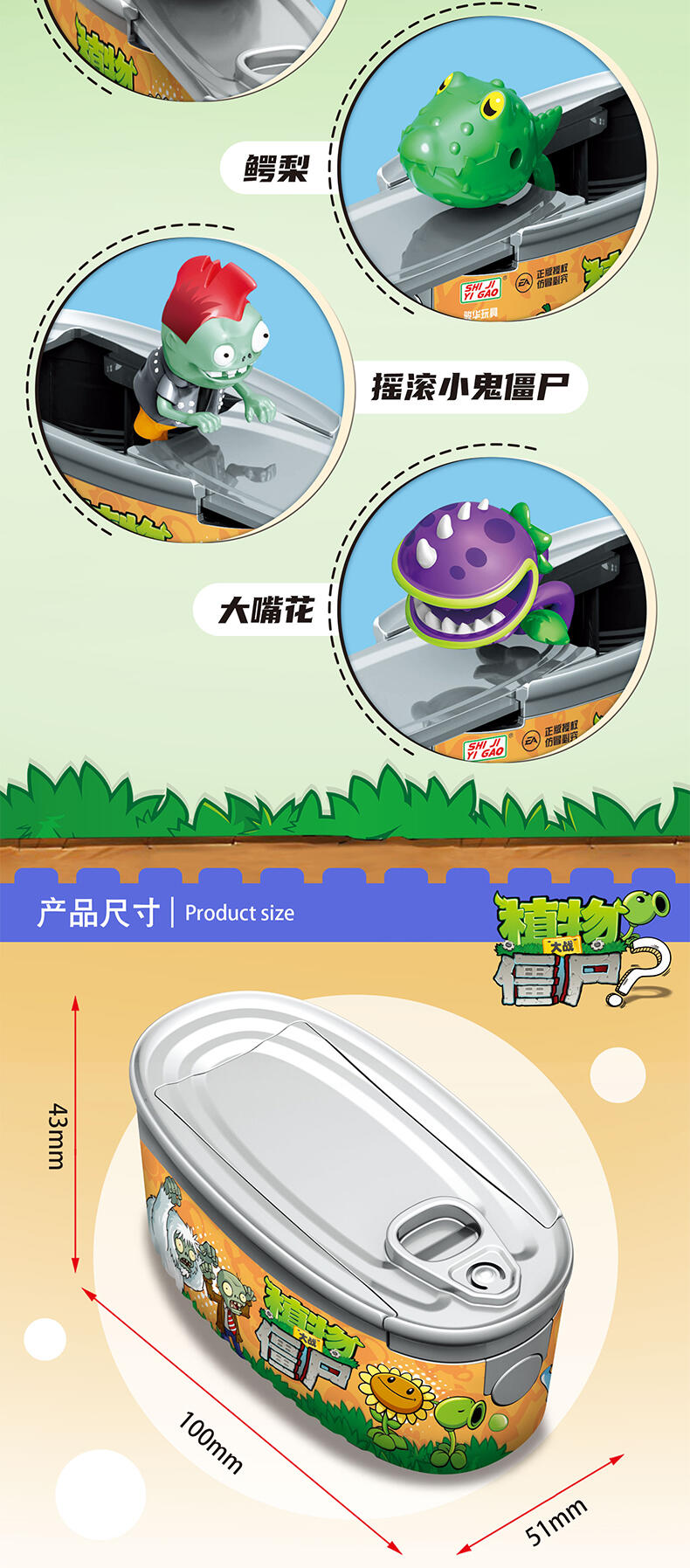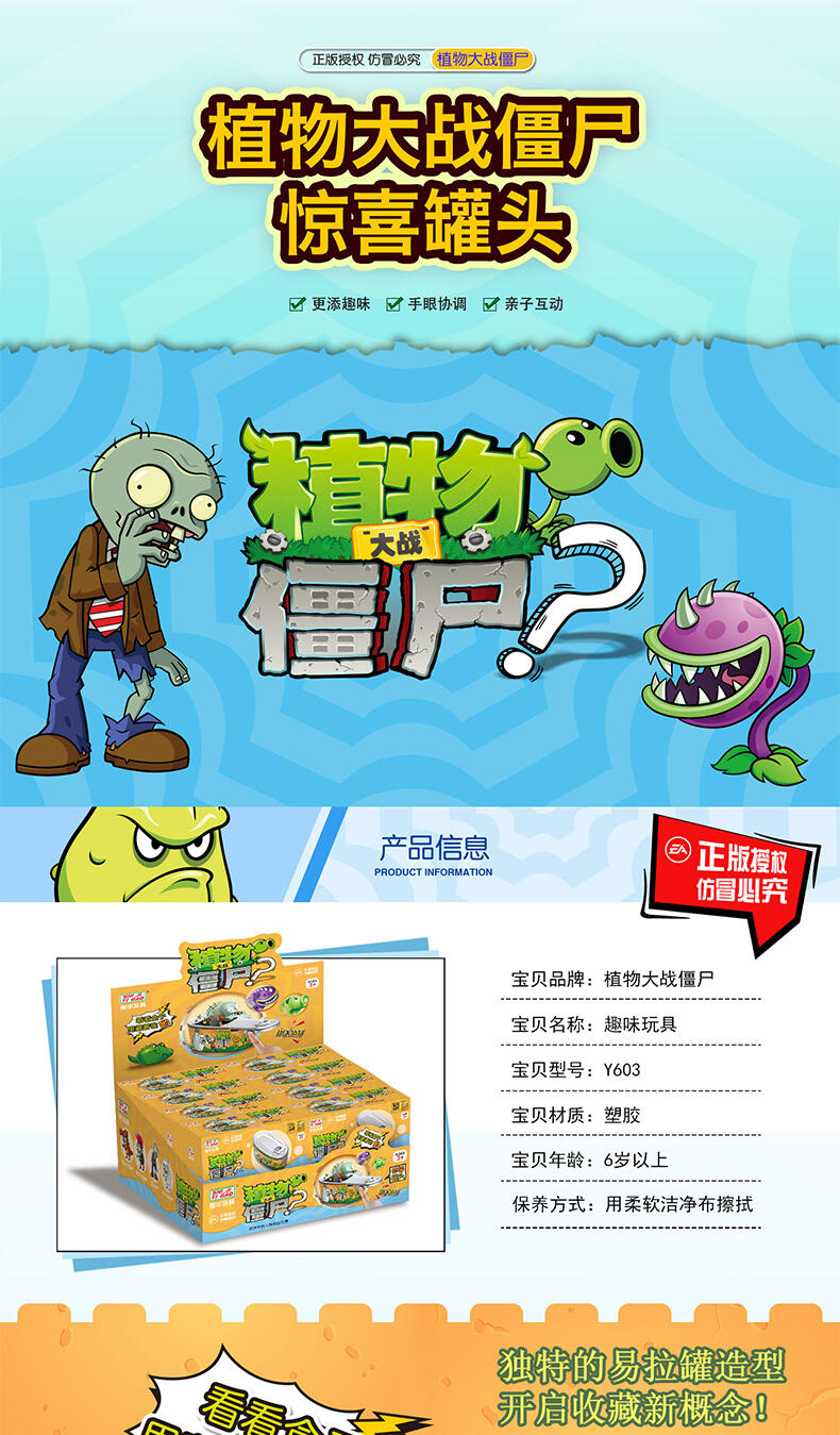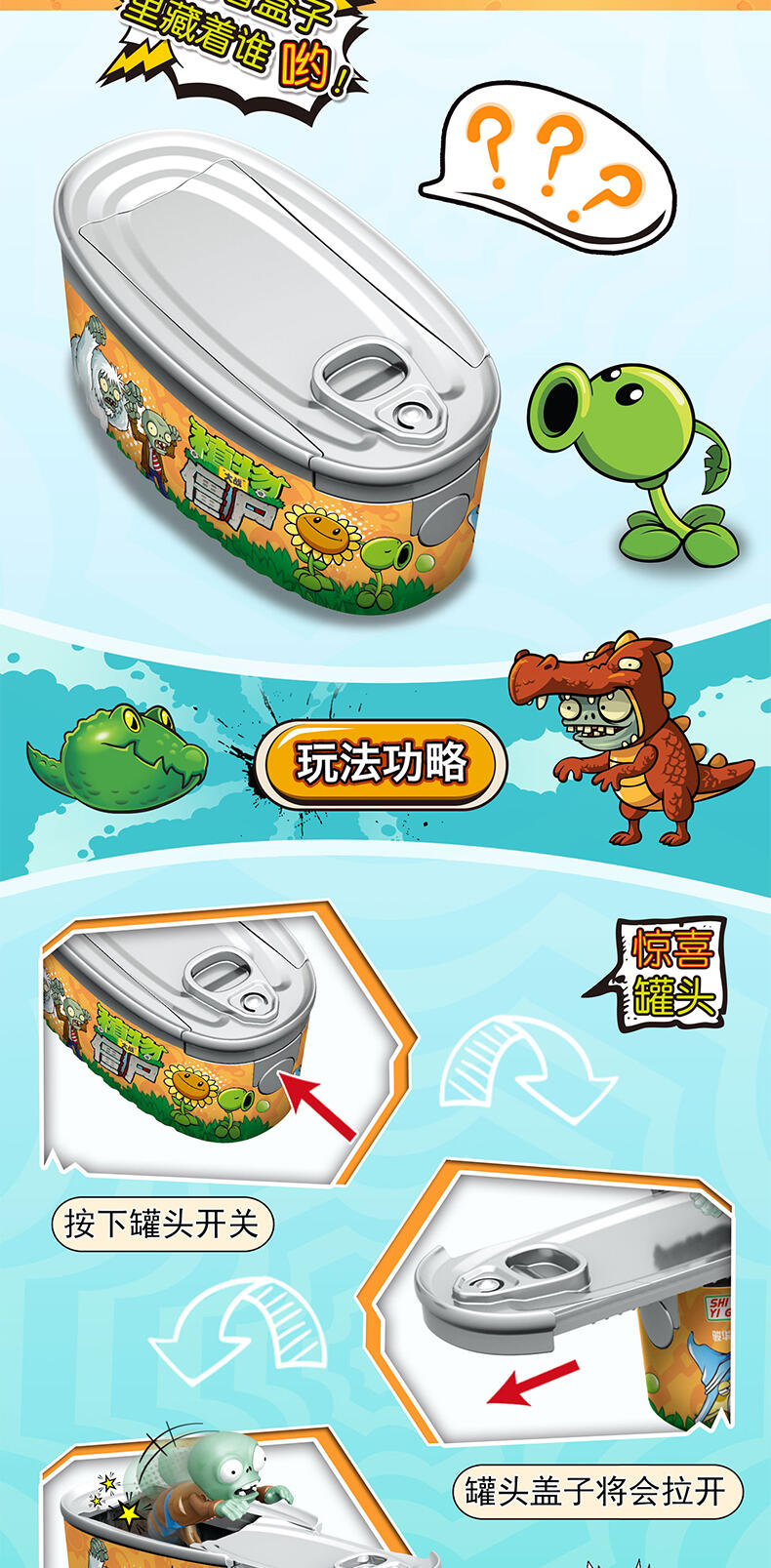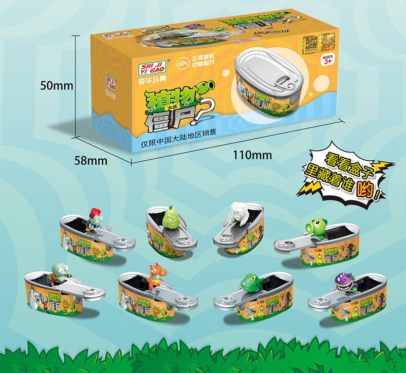 植物大战僵尸盲盒系列,一共8款全新角色,独特的易拉罐造型,开启收藏新概念,按下罐头开关,盖子既会自动拉开,弹射出角色