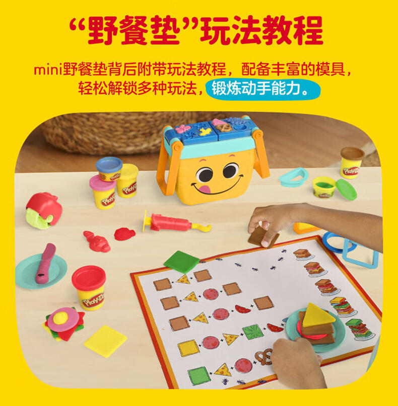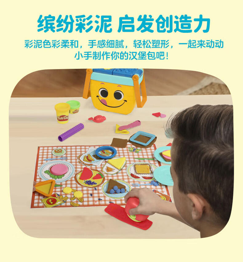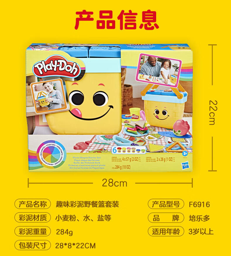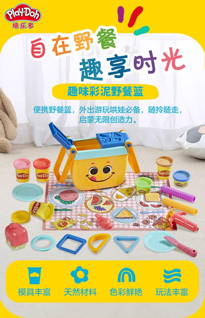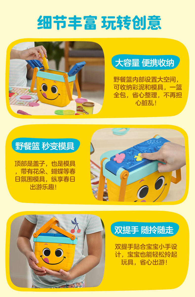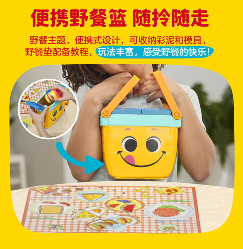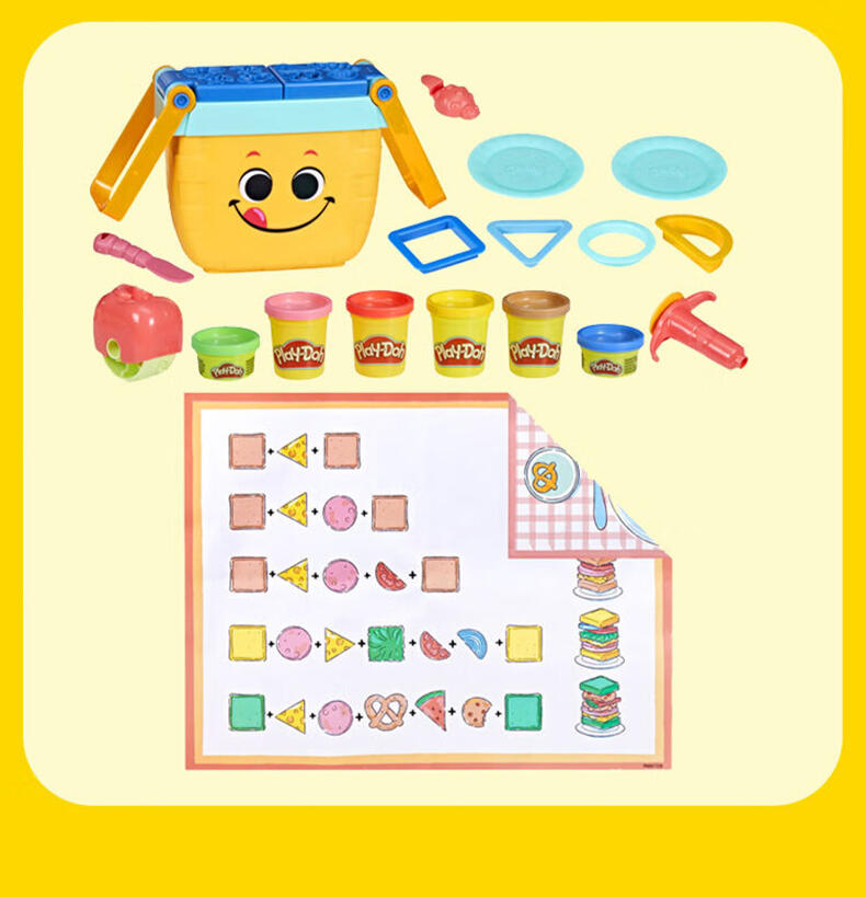 无论晴雨,野餐造型入门套装都是适合任何时候的完美儿童野餐套装!它配有12个入门工具、6种Play Doh颜色和一个存放工具的玩具野餐篮。