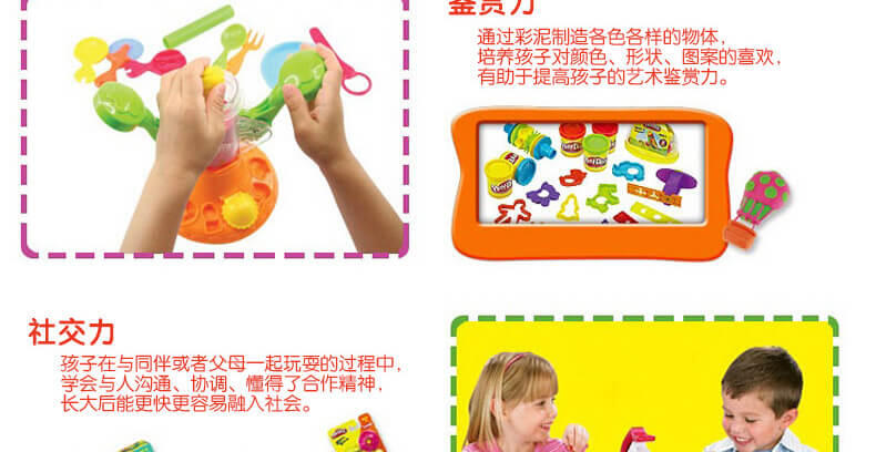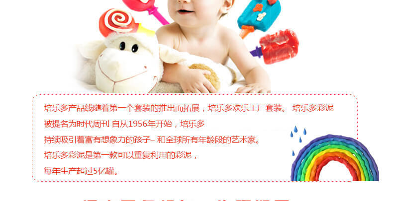 此款8色套装彩泥内含8罐(每罐2盎司)彩泥,8罐不同颜色彩泥。培养小朋友动手动脑能力,同时也是全家一起玩的亲子互动玩具。让小朋友开动脑筋,随意发挥,玩得开心,玩出新意,玩出创意。