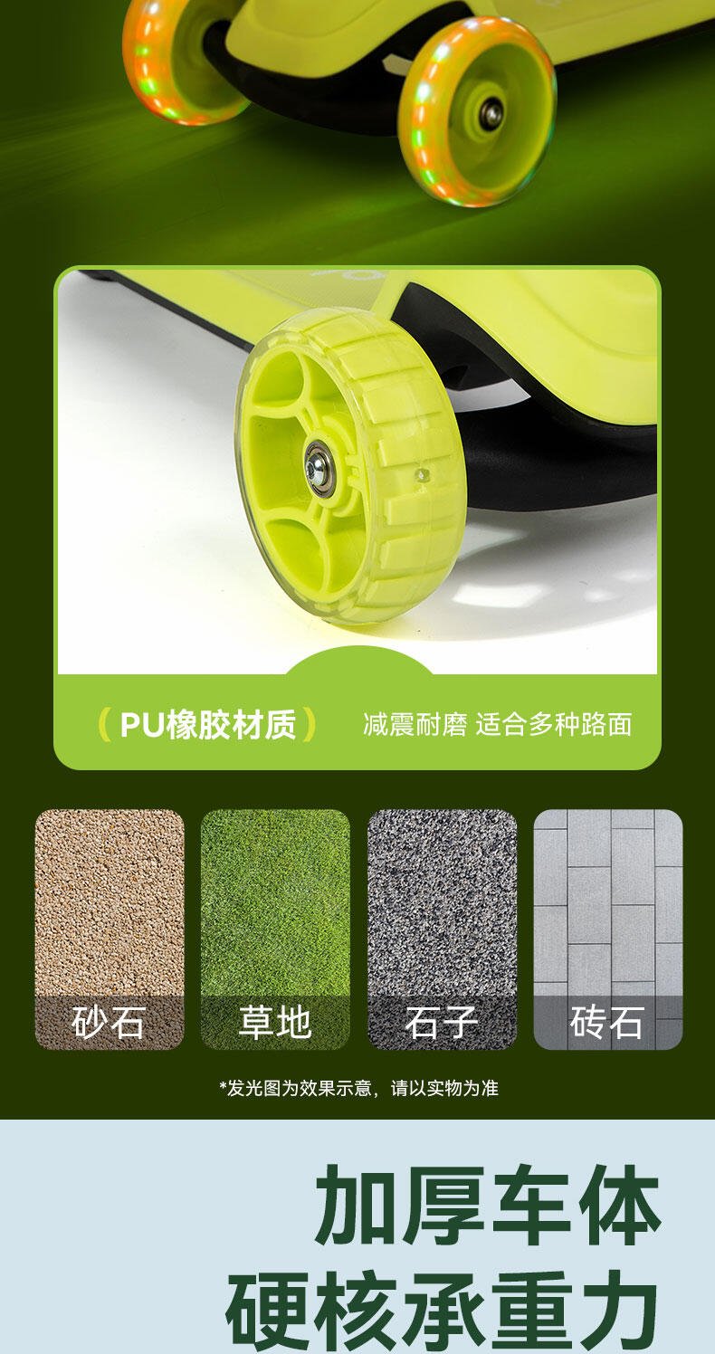 1. 前后PU橡胶闪光轮,避震耐磨(电磁感应原理发电)