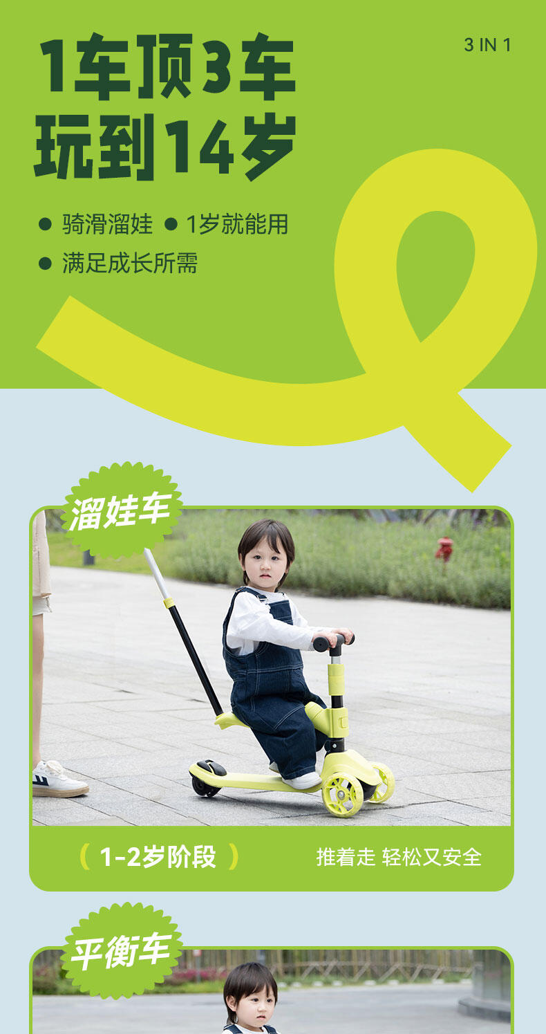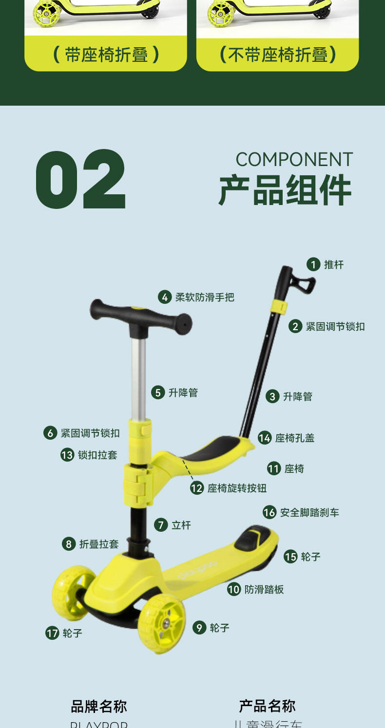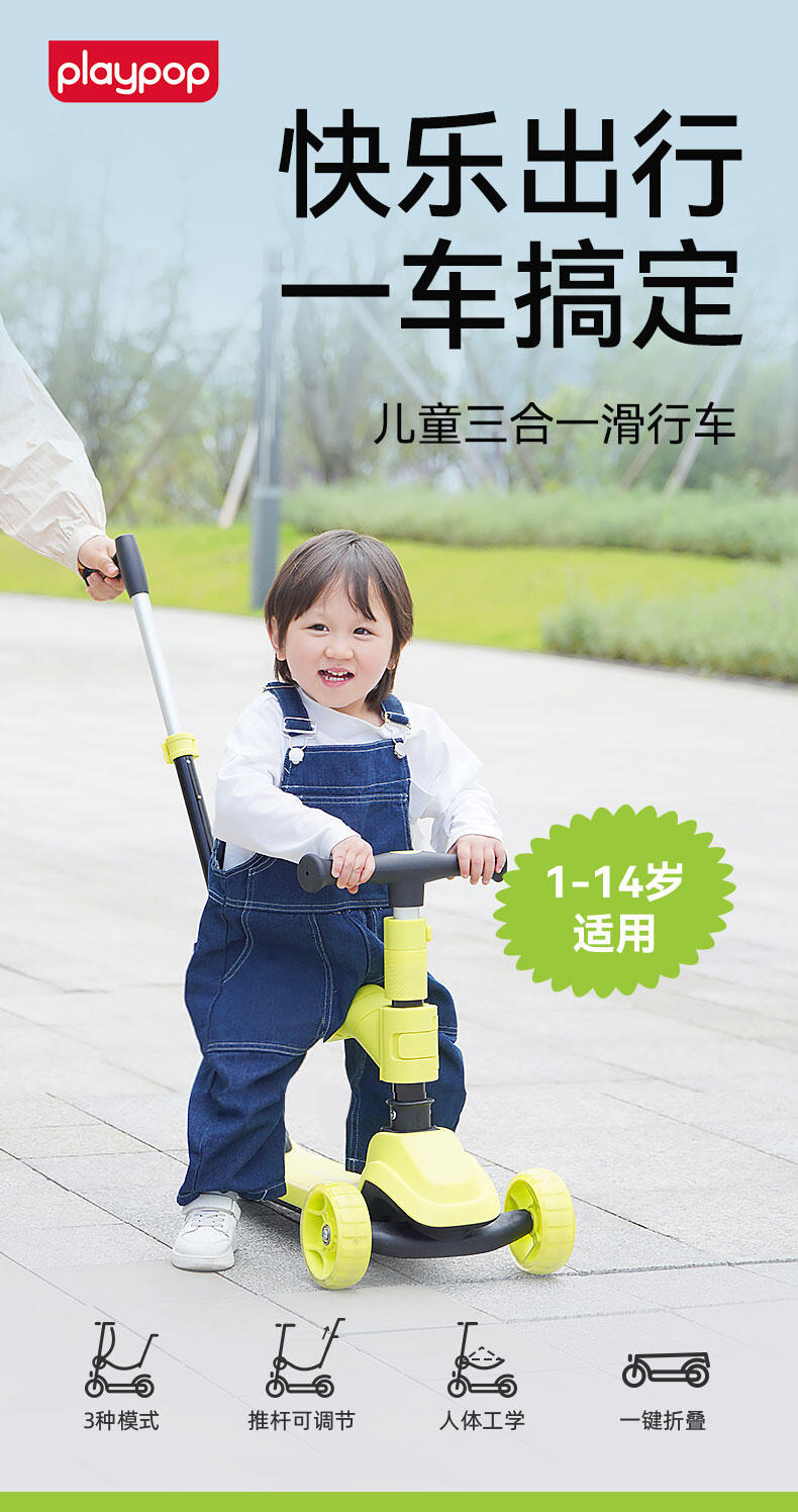 PlayPop培玩宝 三合一滑板车(彩盒)