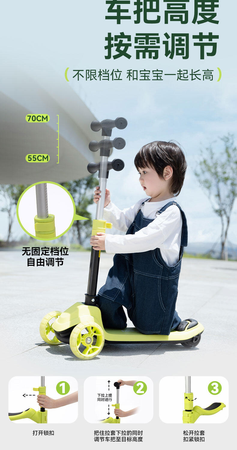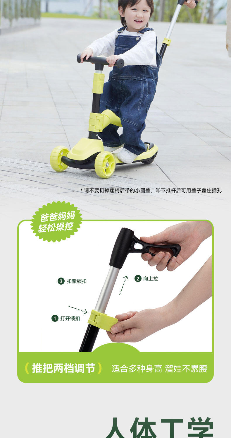 9. 推杆设计:小朋友游玩结束,骑累了可以坐着让大人推行出公园