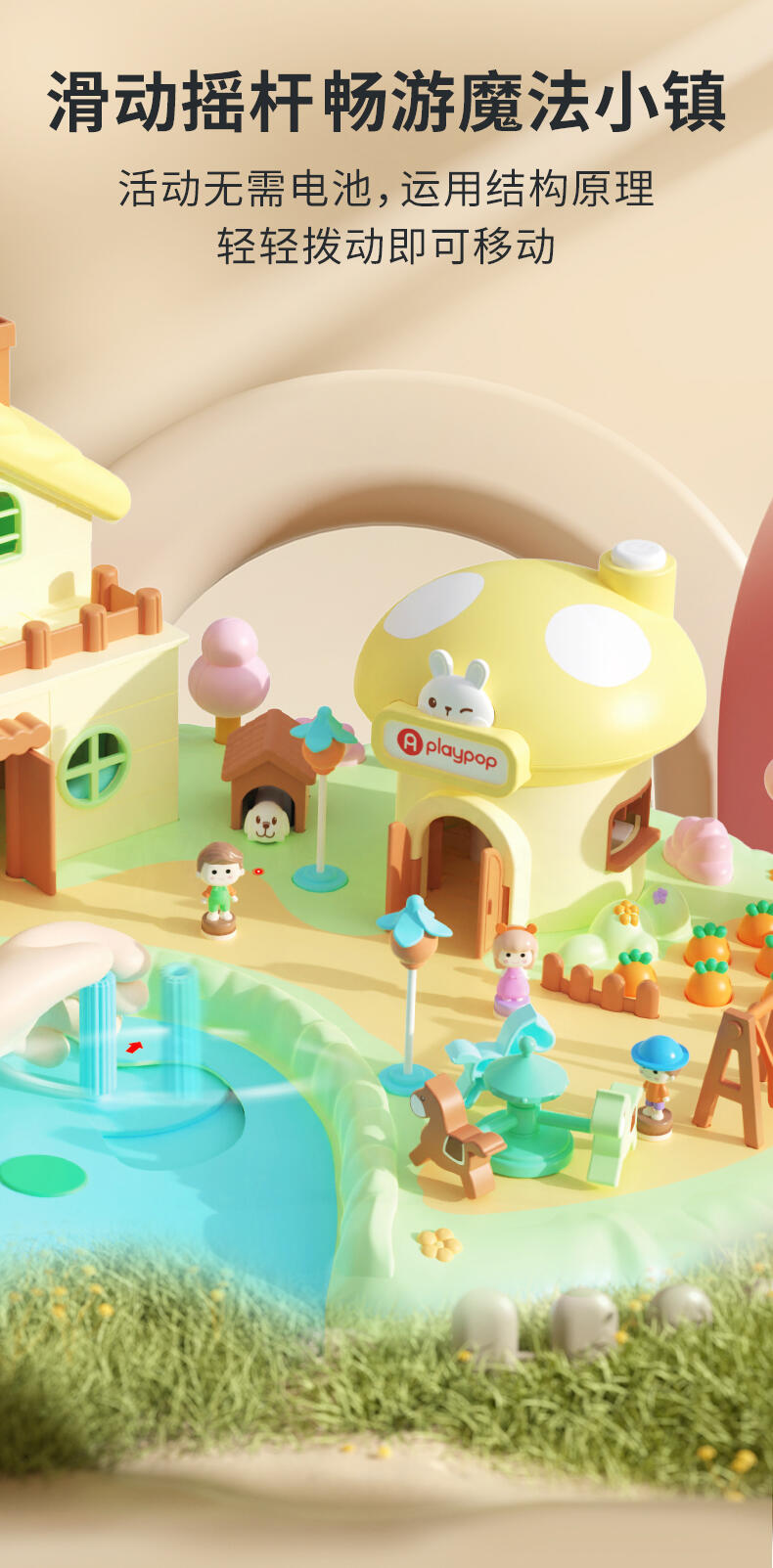 1.活动功能无需电池,滑动摇杆带领小人仔畅游“魔法小镇”