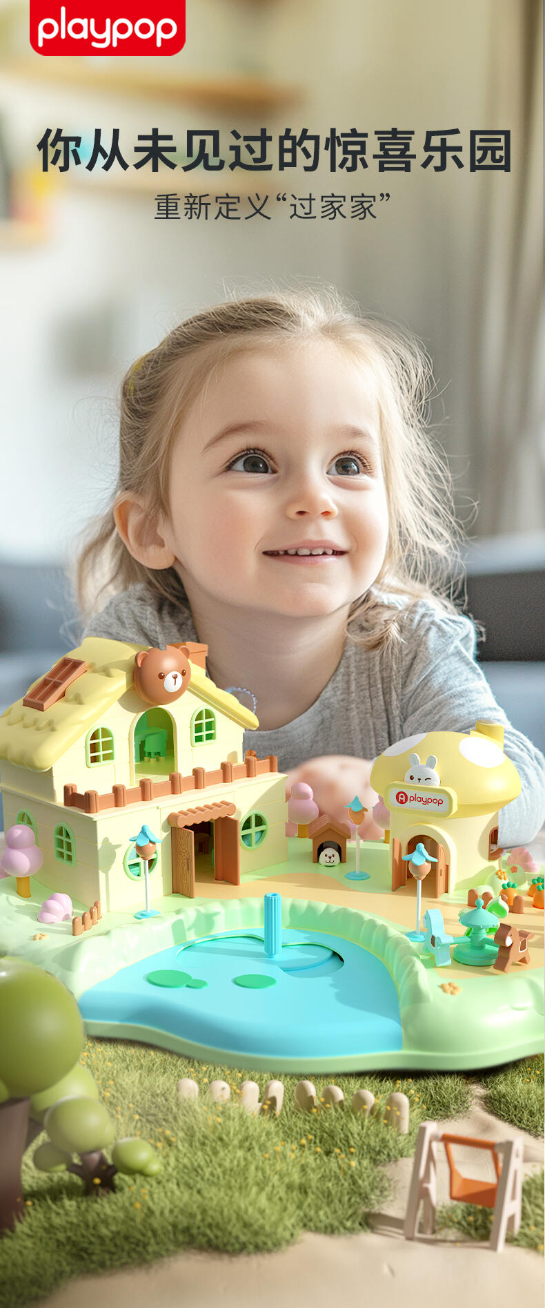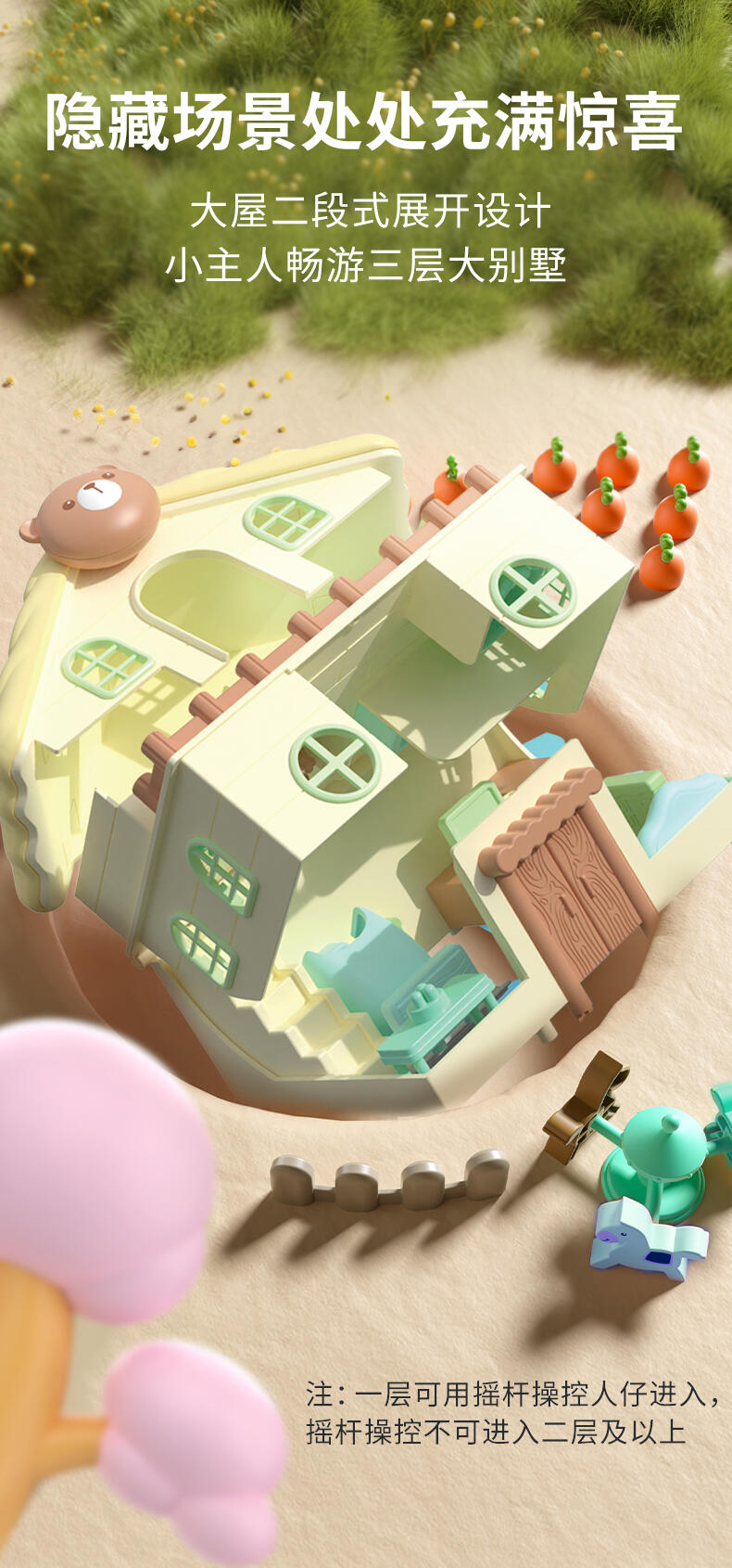 3. 大屋二段式展开设计,作为小主人畅游三层大别墅,(一层可用摇杆操控人仔进入,摇杆操控不可进入二层及以上);
