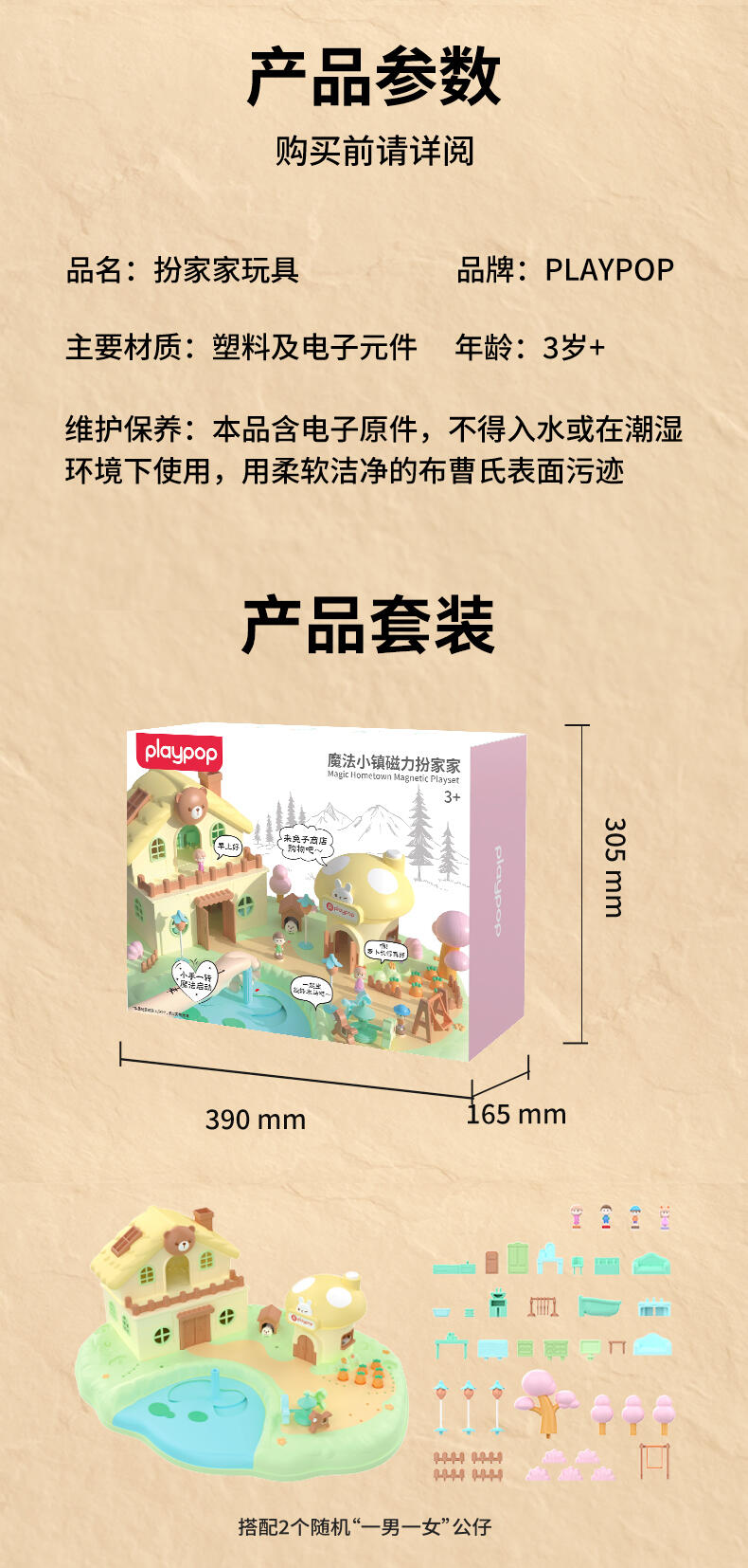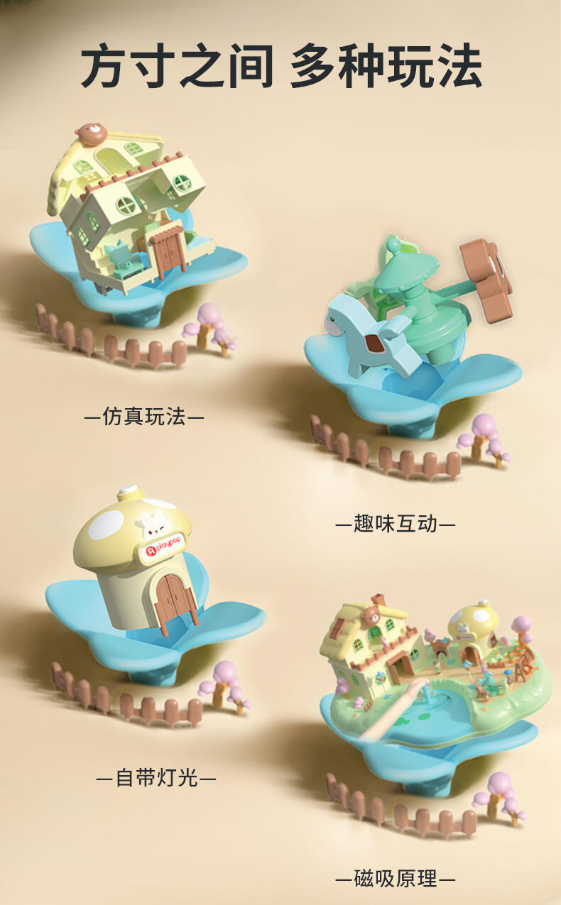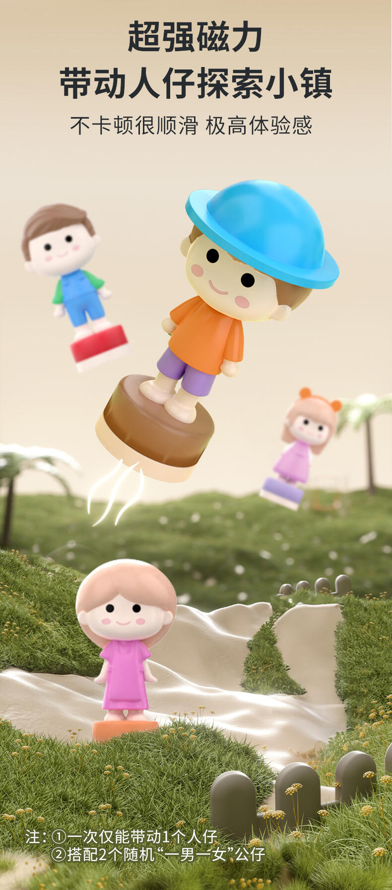 2.超强磁力带动人仔探索小镇(一次仅能带动一个人仔),不卡顿很顺滑,极高体验感;