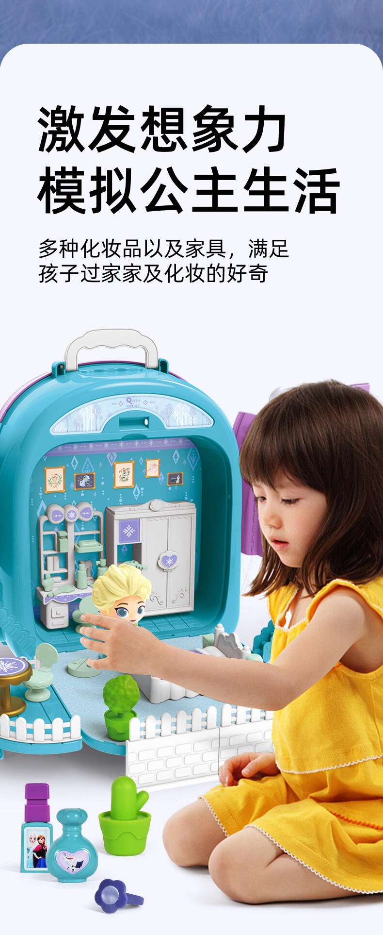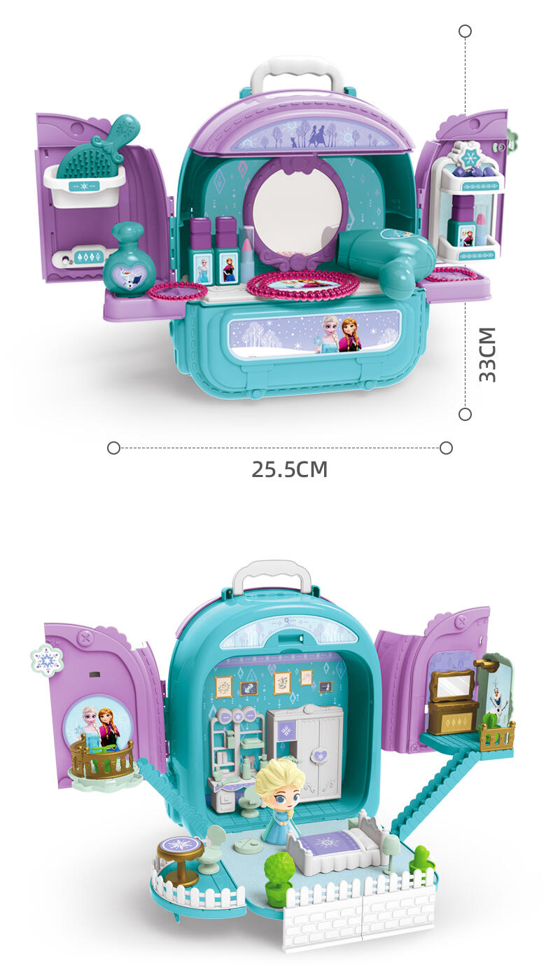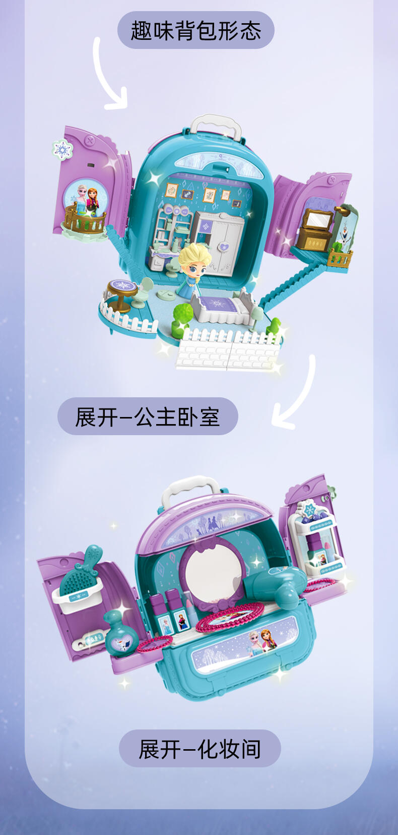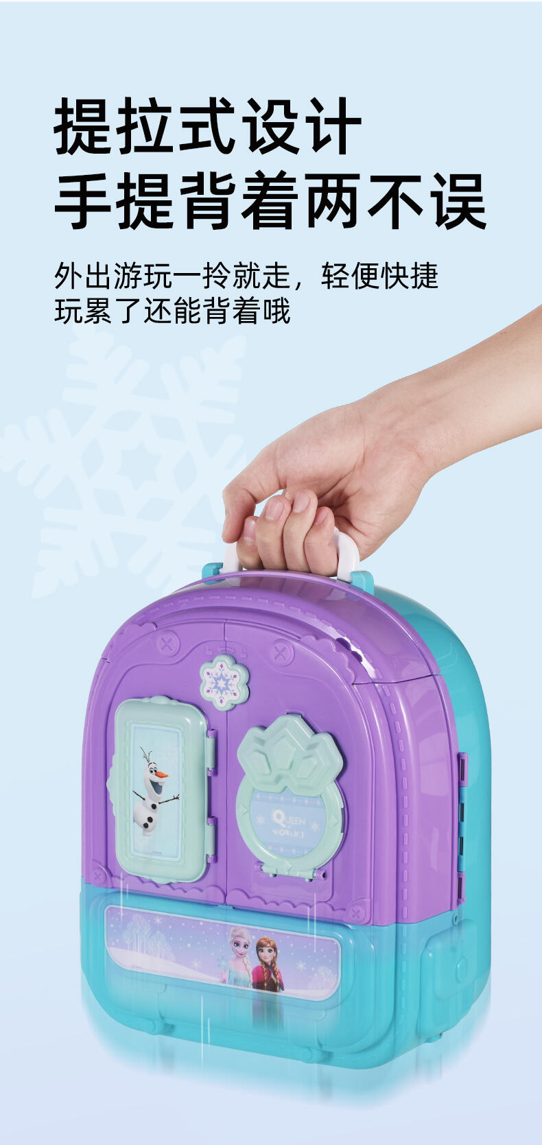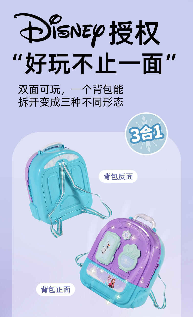 冰雪奇缘IP,打开是梳妆台,合起来是个背包。