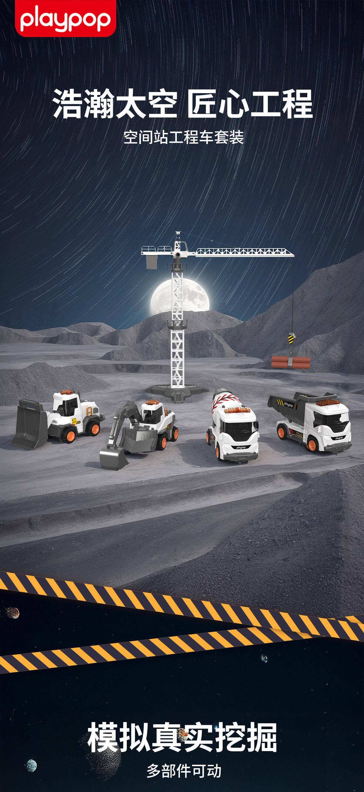 Playpop培玩宝 空间站基地工程车套装