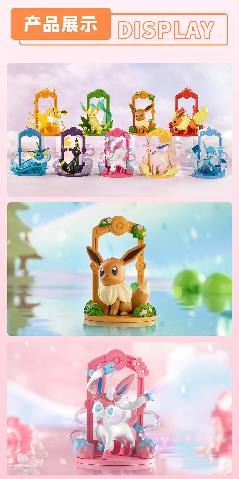 4、伊布形象+场景搭配,突出各个特性属性,让伊布家族在静态展示上更加亮眼;
