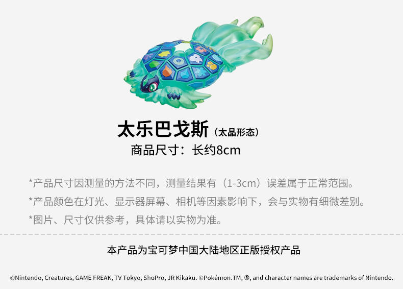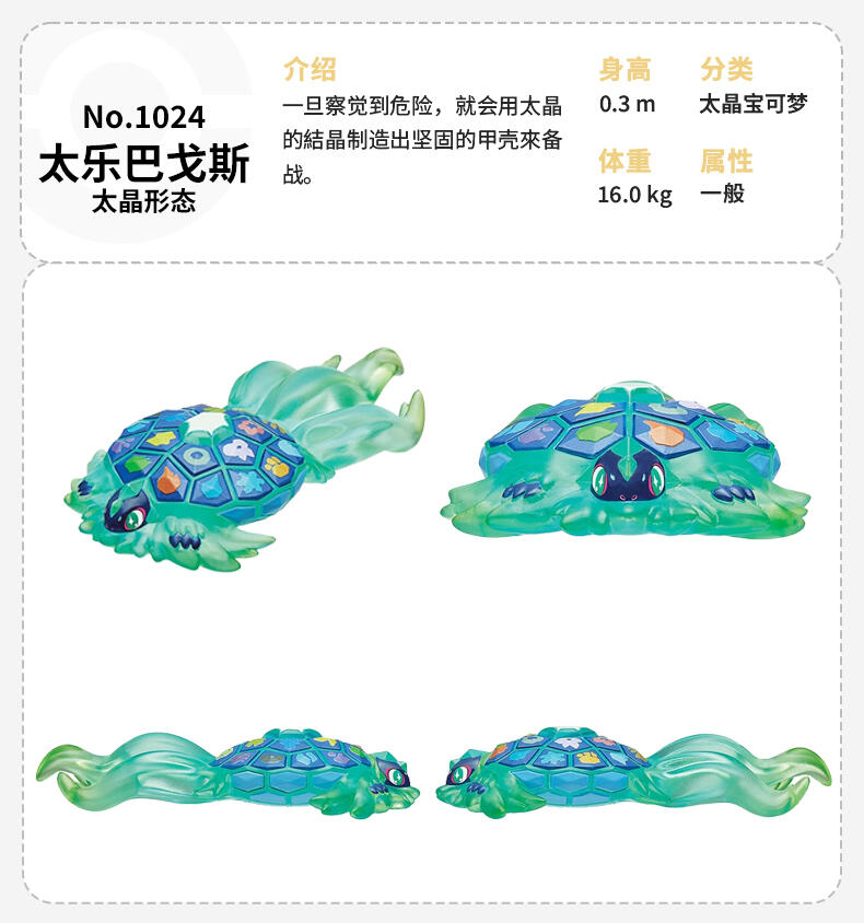 Moncolle是一系列高质量的人物,再现了口袋妖怪的外观。它从头顶到背部、侧面和脚底都被忠实地复制了出来,所以如果你把它捡起来,你可能会发现[Terrapagos(Terrastal Form)]的新秘密!尺寸约为8厘米。