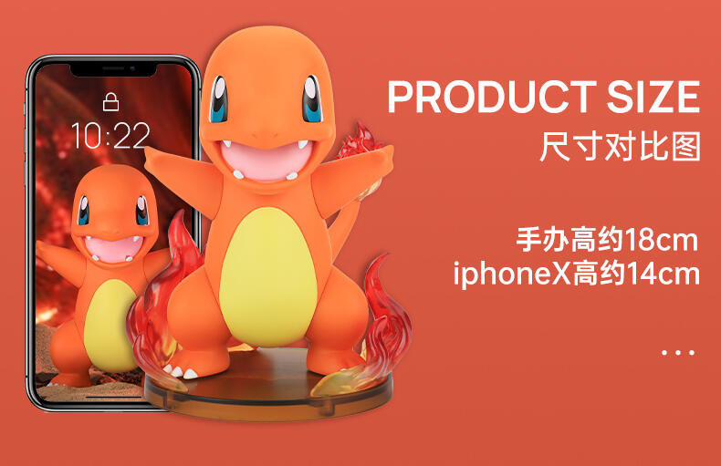经典IP宝可梦里的小火龙形象,萌趣可爱,可以做摆件或收藏。