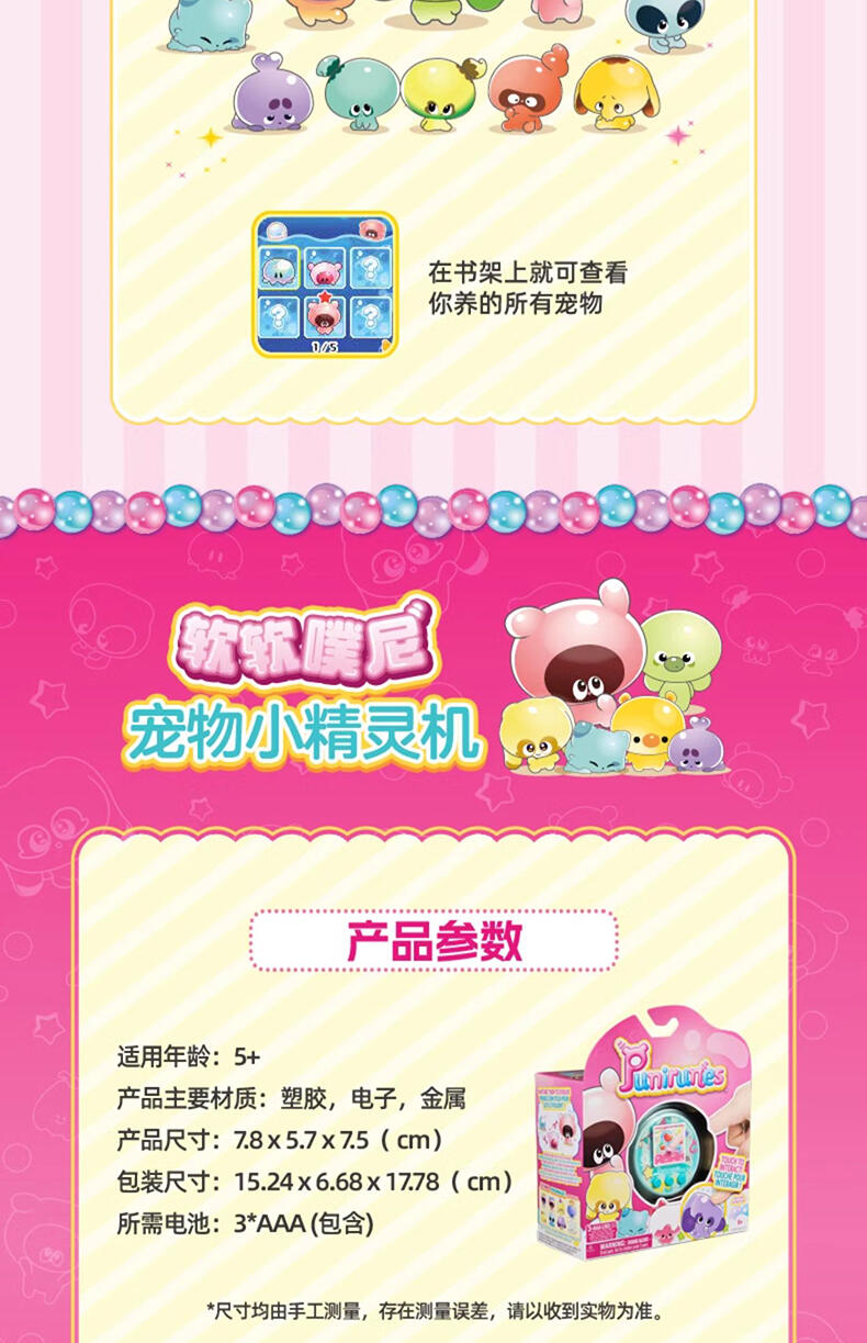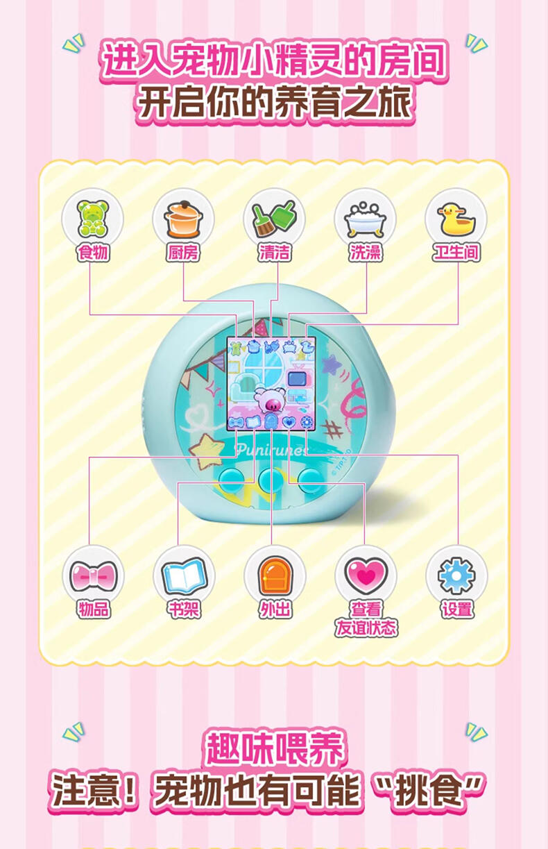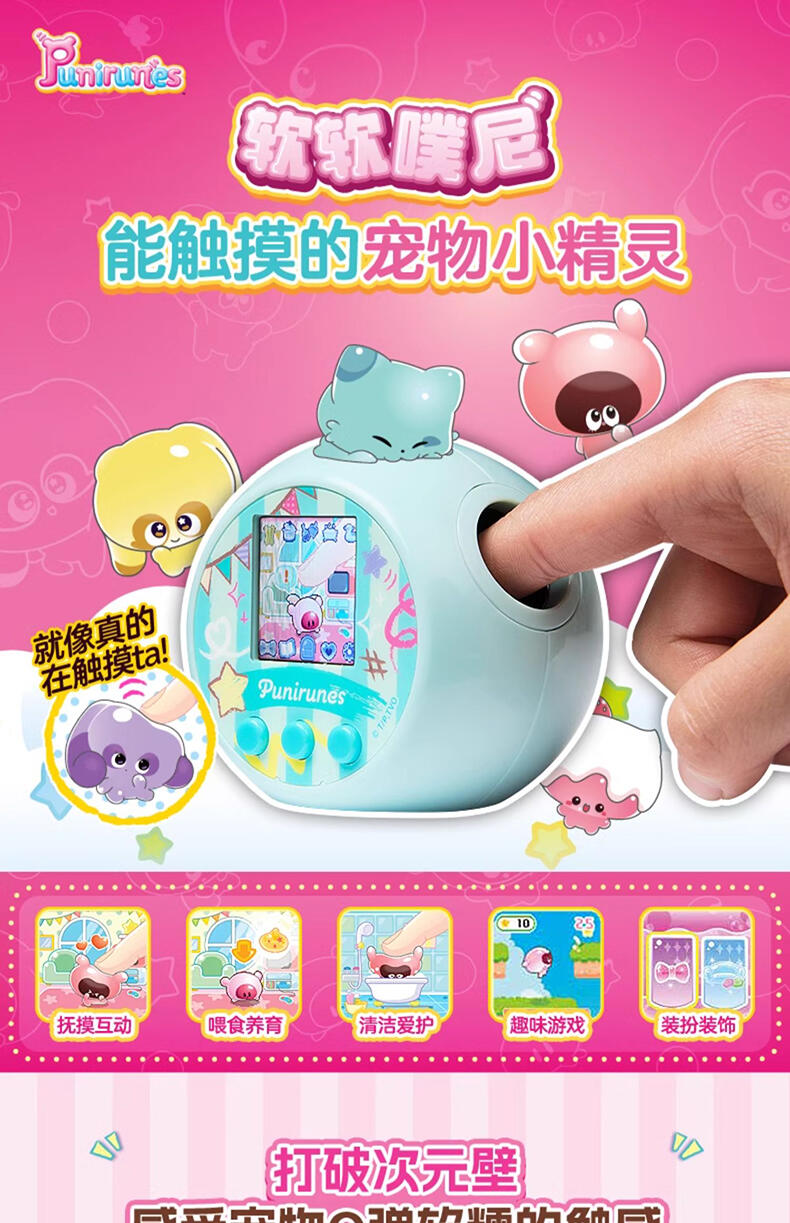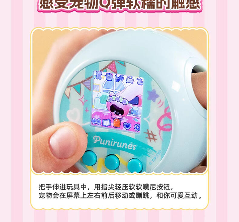 为孩子们介绍Punrunes数字宠物玩具!将照顾数字宠物的乐趣与可弯曲的触觉元素相结合,构建一个充满超级可爱、可爱角色的乌托邦!将手指放入Punrunes玩具中,发现一个对触摸有反应的软按钮。LED彩色显示屏反映了你在屏幕上的动作,就好像你真的在触摸Punrunes角色一样!移动按钮,观察角色的反应。与你的亲密好友建立友谊,用大量的南瓜让他们开心,准备食物,给他们洗澡,打扫房间,玩游戏等等。当你玩耍时,赚取种子来制作食物,制作配饰,帮助你的Punrune从婴儿到儿童再到成人成长!在市场上花硬币定制带有领结、帽子、花冠等的鱿鱼,改变你朋友的颜色,装饰他们的房间——这太有趣了!探索他们的世界,收集所有55个角色!该吊舱体积小巧,便于携带,可以带到任何地方。包括3节AAA电池。Punrunes儿童毛绒玩具是给女孩和男孩的有趣生日礼物,也是任何场合的礼物。让自己沉浸在Punrunes世界!包括:1个宠物小精灵机,1个说明书