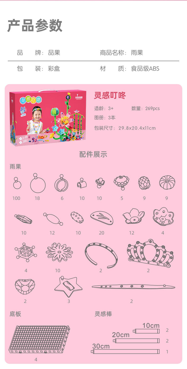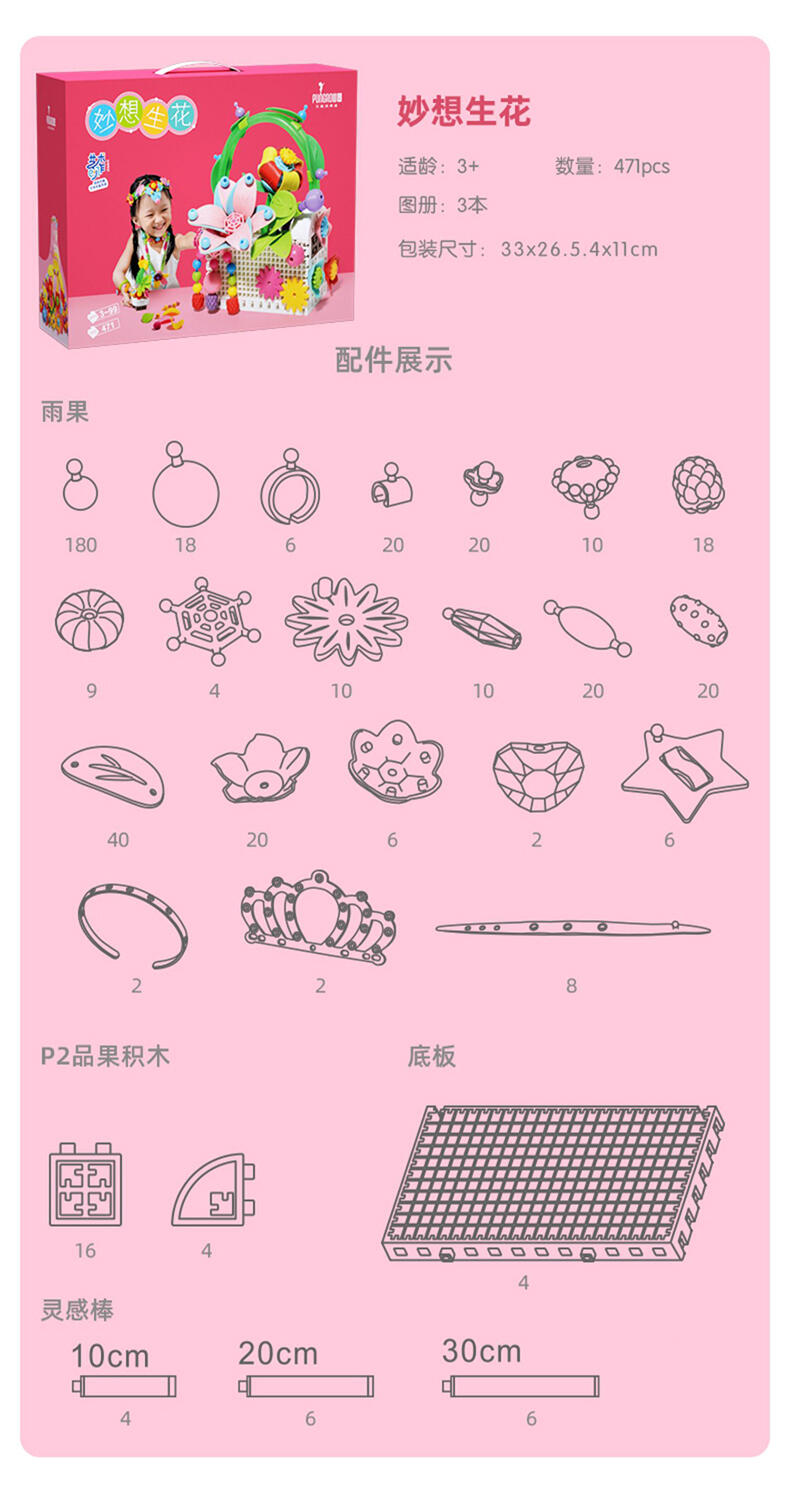 品果是四喜人旗下一款可以六面拼插、隐藏接点、跨接固定的方块构建积木,品果方块的形状包括了正方形、直角三角形、等边三角形、扇形、内切圆和半型六种基本的几何形状,还有车轮、旋转件等配件