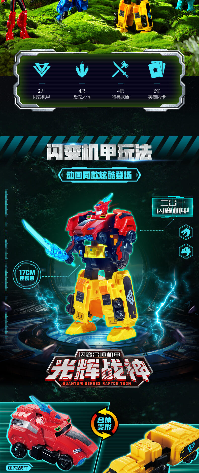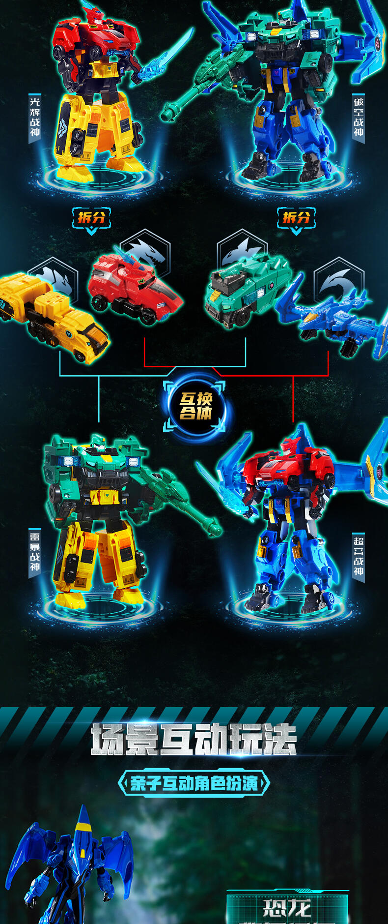 1、丰富角色形态,可变形成四辆战车与四个机器人