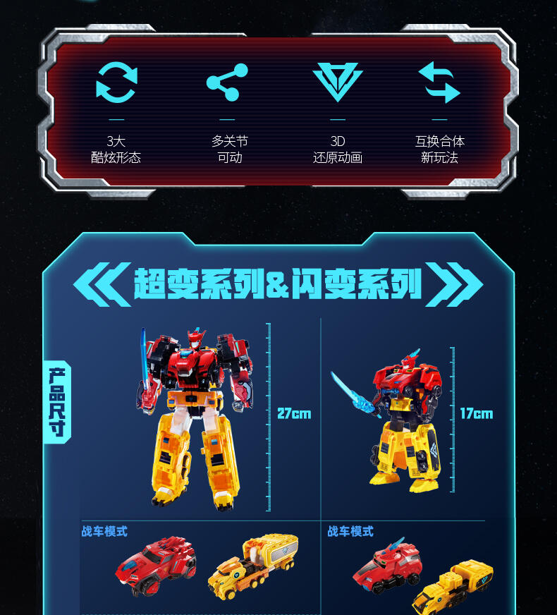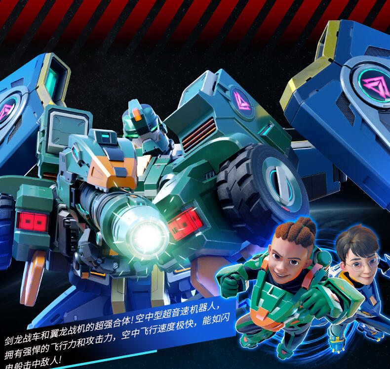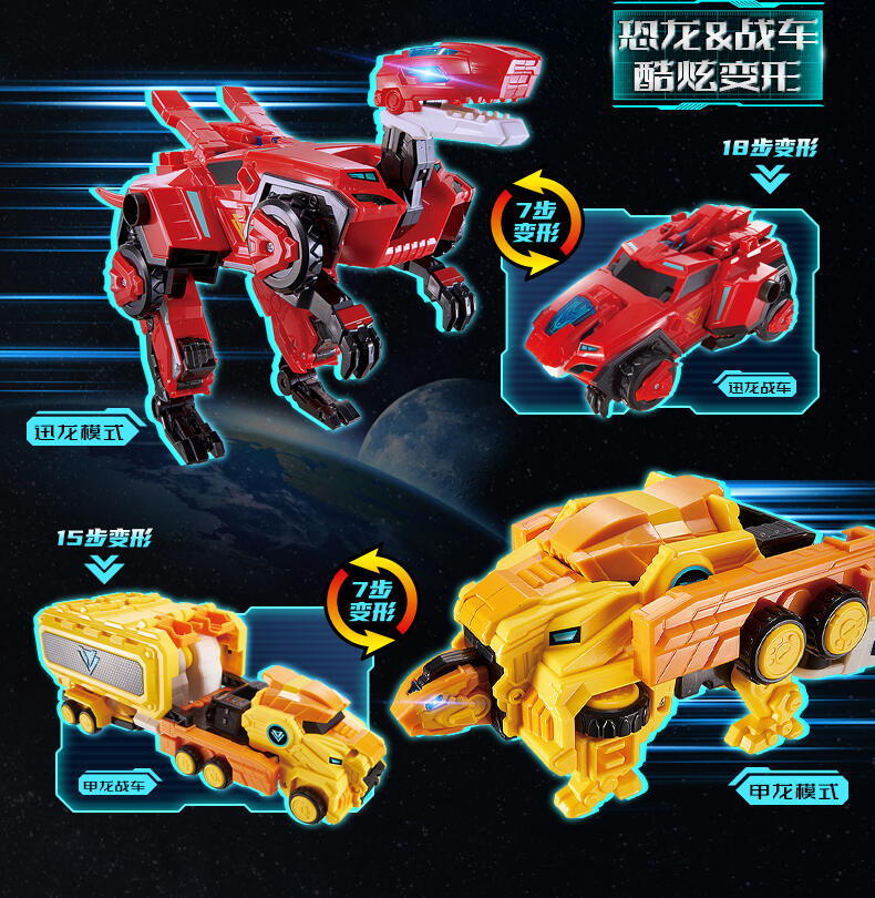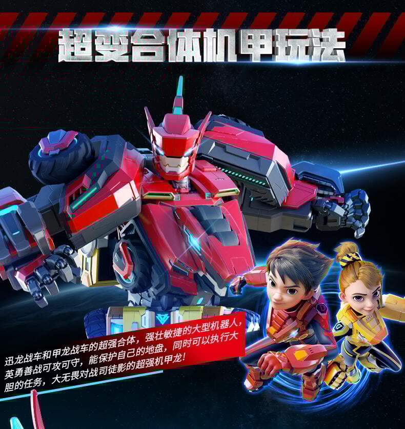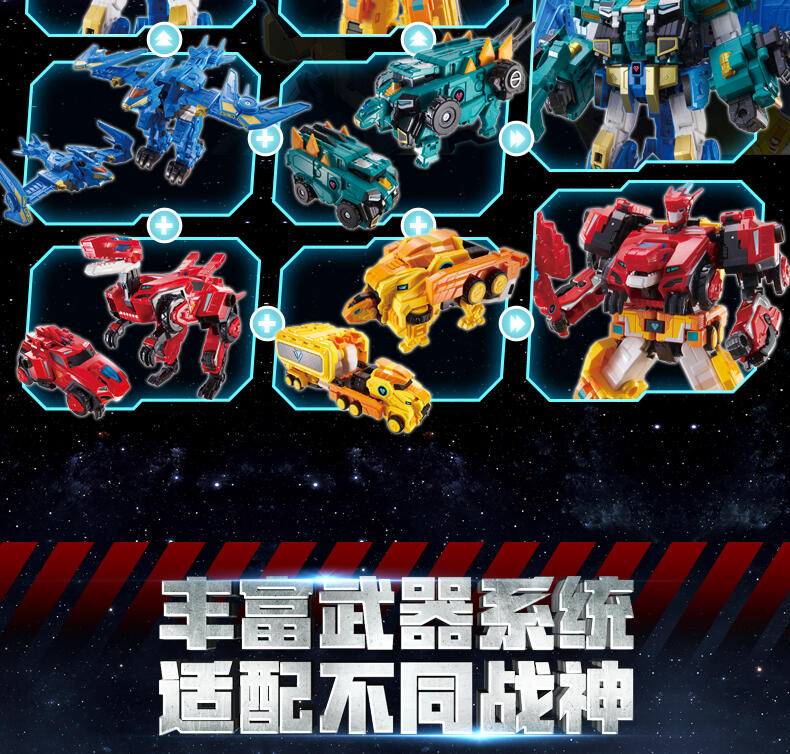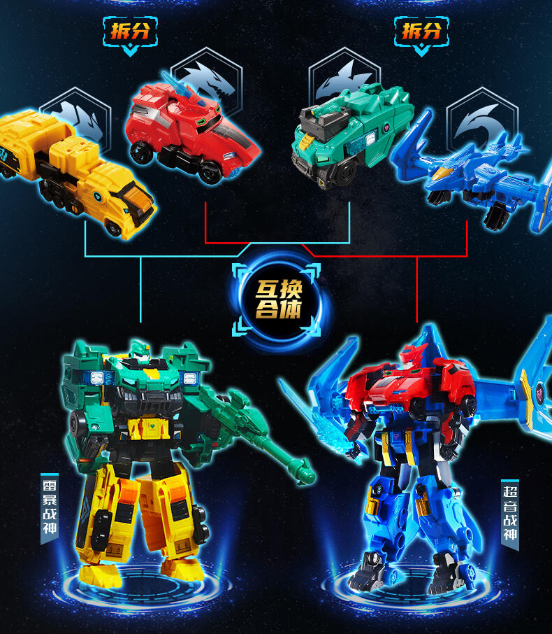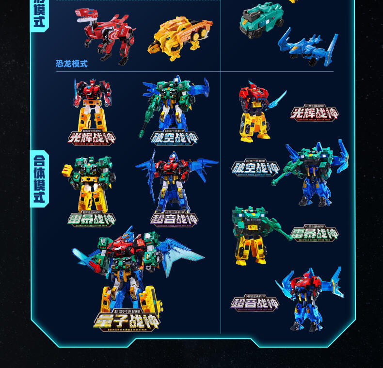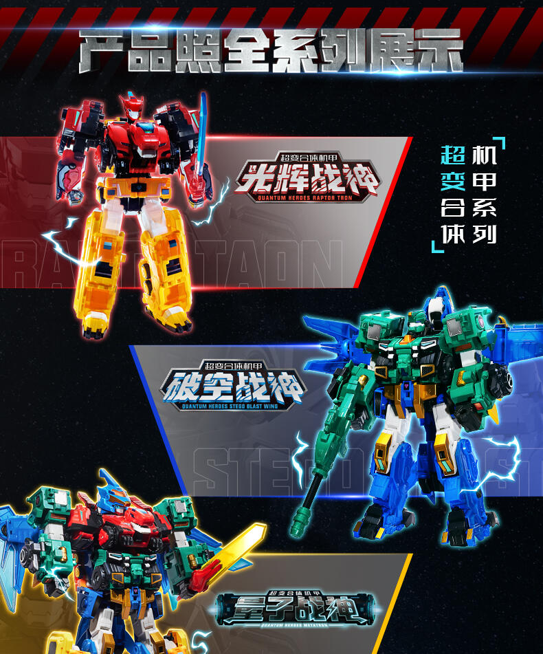 1、剑龙战车与甲龙战车合体,雷暴战神,千钧合体! 2、战车变形恐龙; 3、可与超音战神进行互换合体或合体成为量子战神