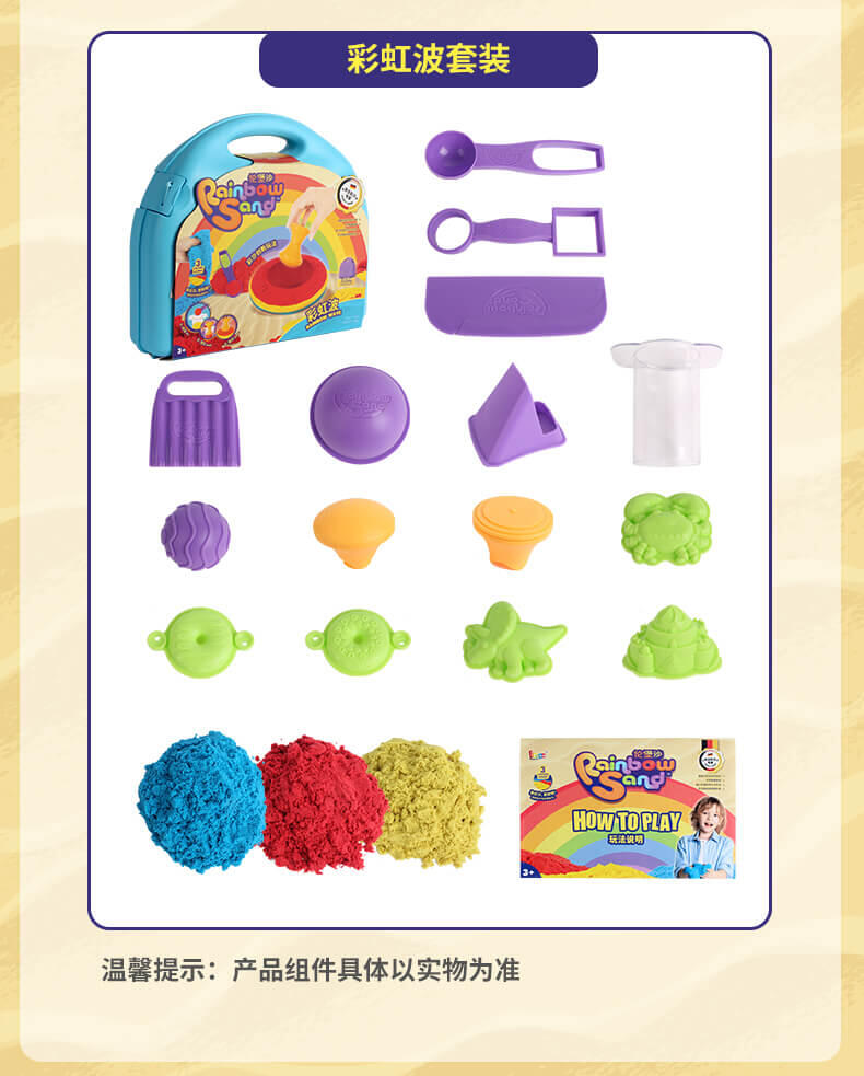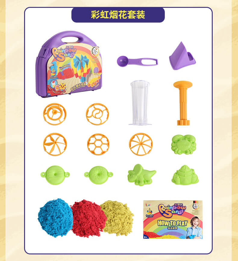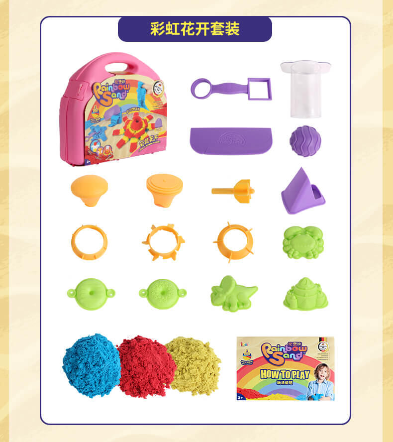 ·玩具沙颜色更鲜艳,提高孩子对色彩的认知和敏感度、并锻炼色彩搭配能力