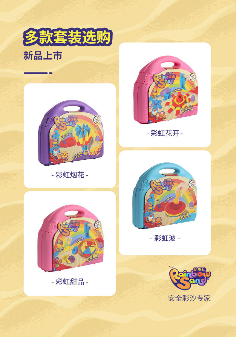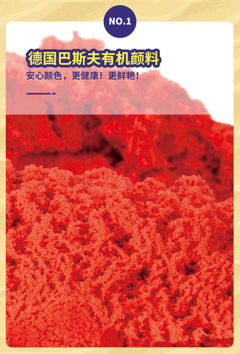 ·玩具沙颜色更鲜艳,提高孩子对色彩的认知和敏感度、并锻炼色彩搭配能力