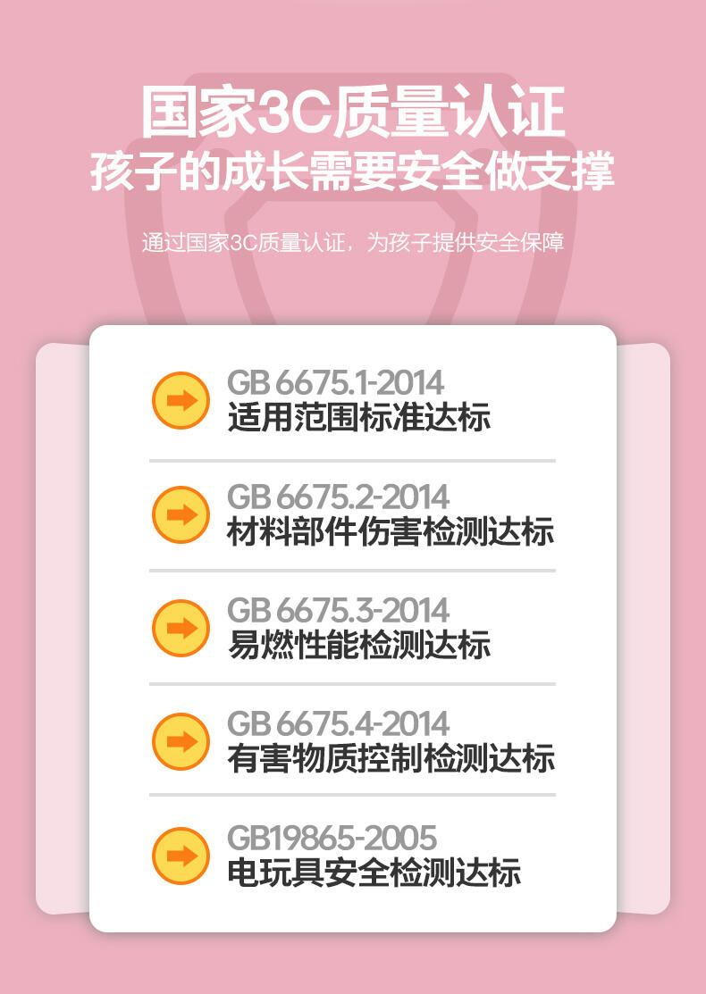 遥控四通,支持前进、后退、左转、右转等操作,操作简易不复杂,孩子易上手;手动左右双门可开,构造认知,智趣升级。亮眼前后车灯,玩车不怕夜黑照亮前路。ABB工程臂喷涂,均匀不易褪色;车身前轮装有减震系统,可适应多种路面,安稳行驶。USB充电,可循环使用,绿色环保;软质橡胶轮胎纹路清晰,与地面形成恰当好处的摩擦力,不伤地板。全车车身边角圆滑处理,无尖锐毛刺,质量合格,不会割伤宝宝身体。通过国家3C安全认证,为孩子提供安全保障。
