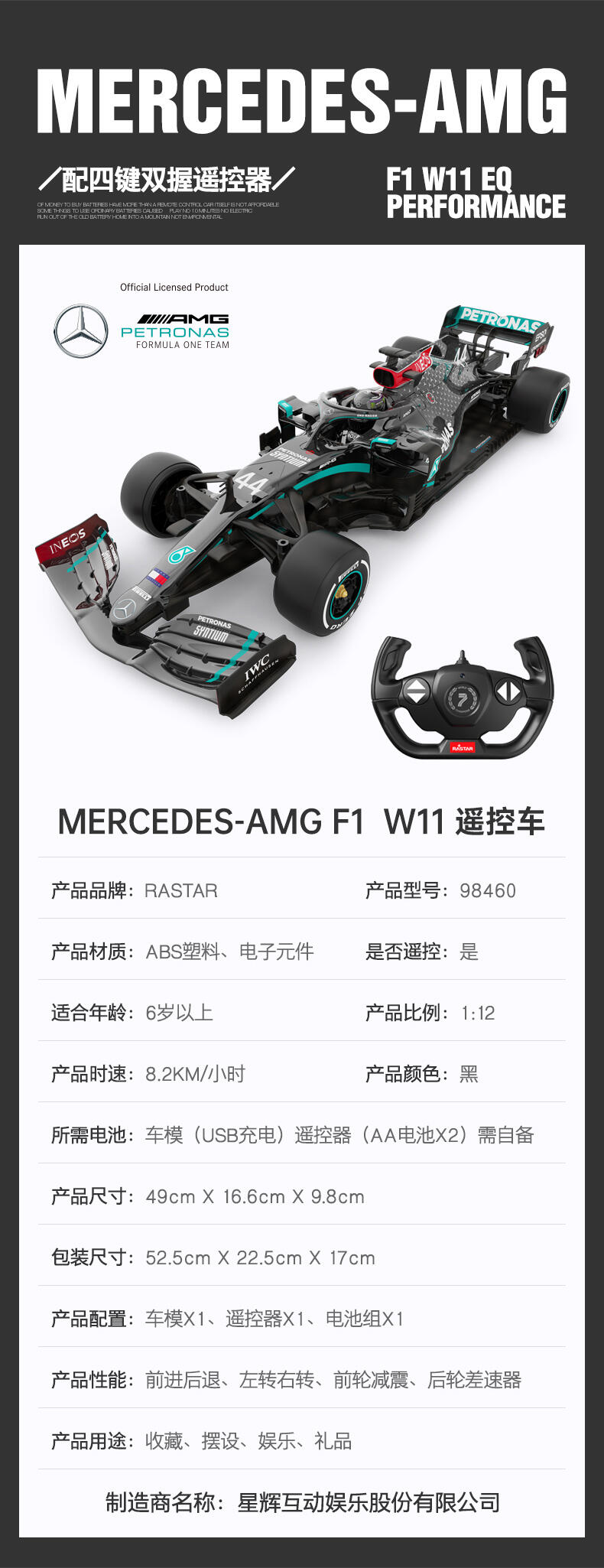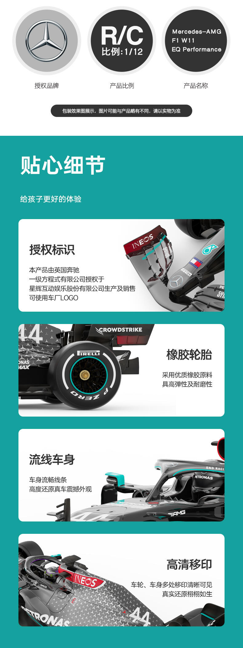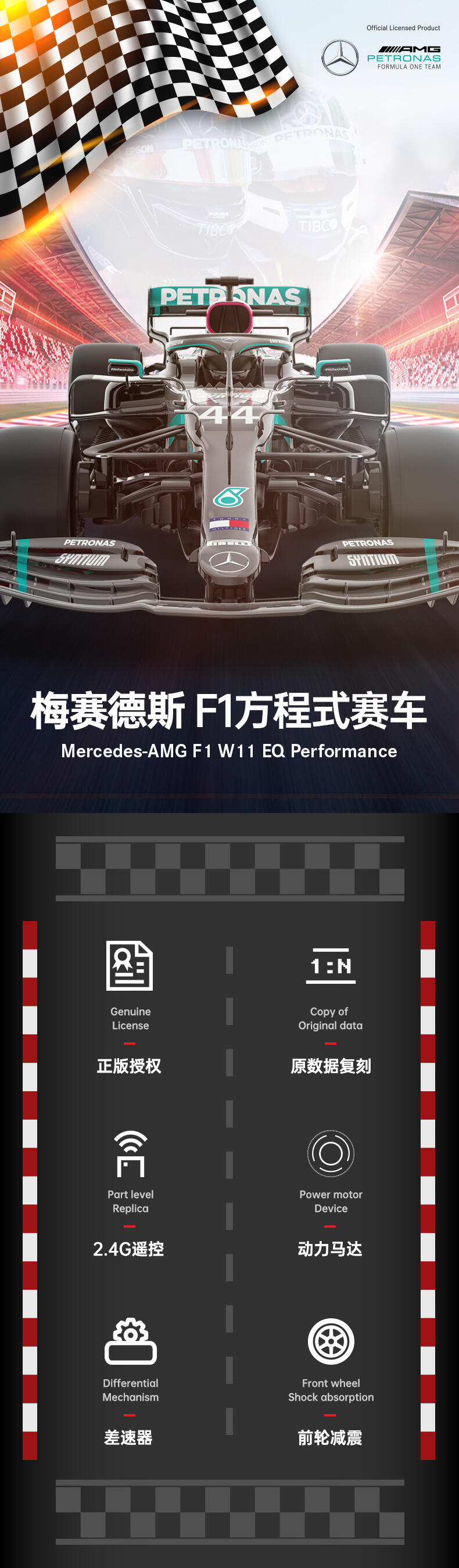大比例奔驰 F1 W11车模,细节丰富,操控更具力量感