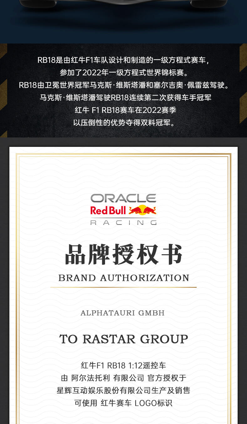 至Rastar 星辉 1:12红牛F1 RB18的链接已被复制