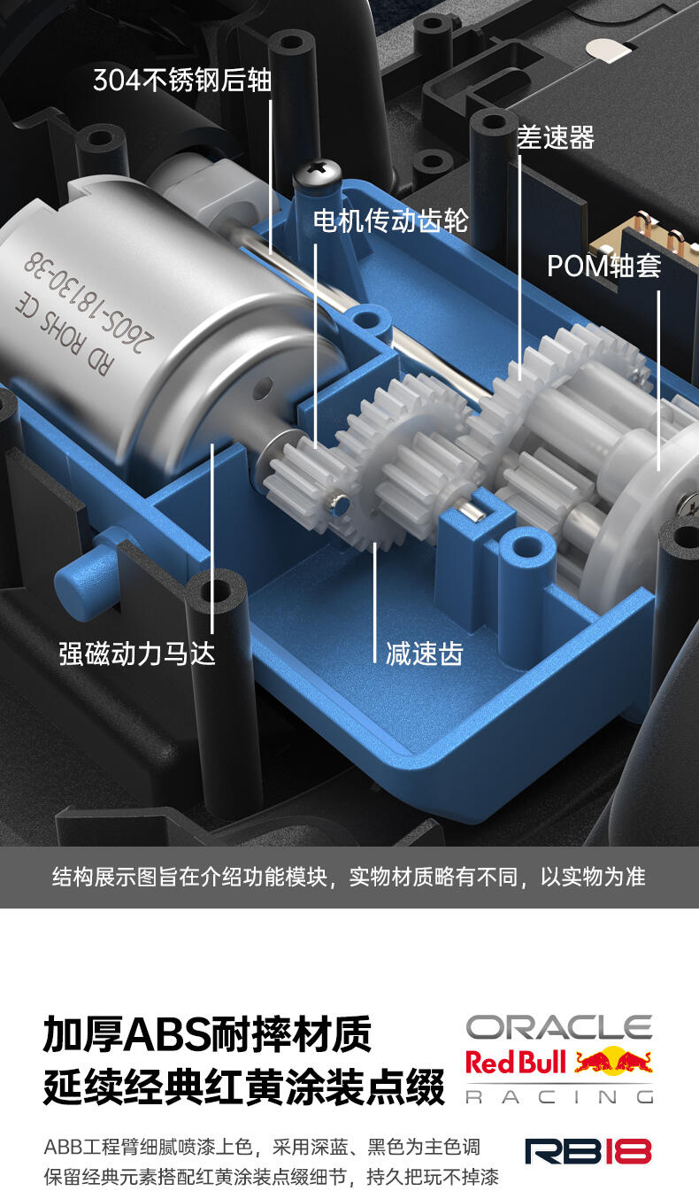 真度还原赛车地面效应车身、创新型空气动力学; 强磁动力马达遥控四通,前进后退左右转向轻松驾驭