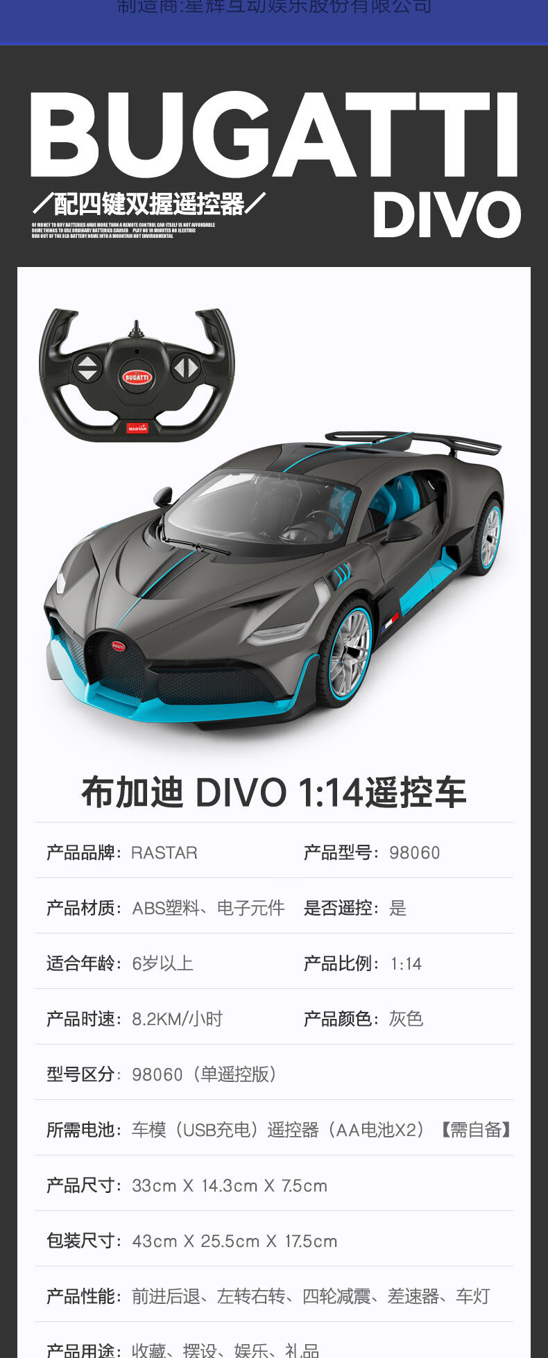 Rastar星辉 1:14 布加迪 Divo