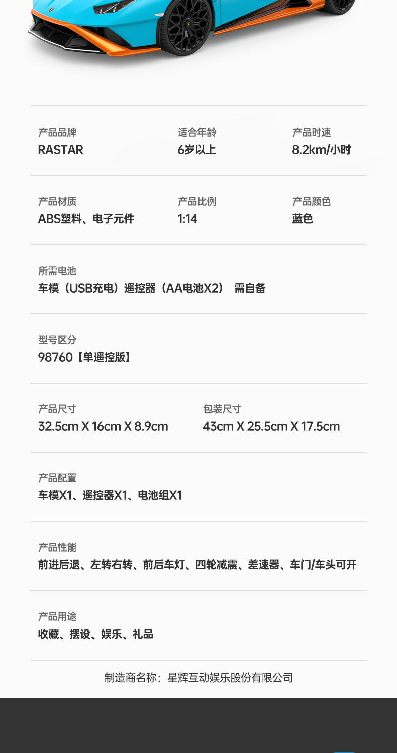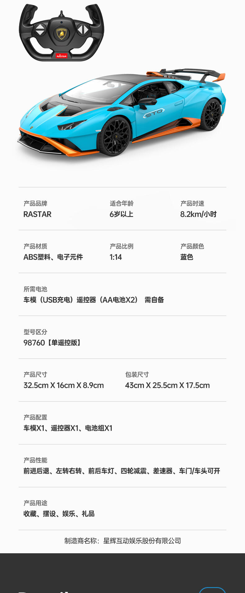 至Rastar星辉 1:14兰博基尼HURACA N STO的链接已被复制