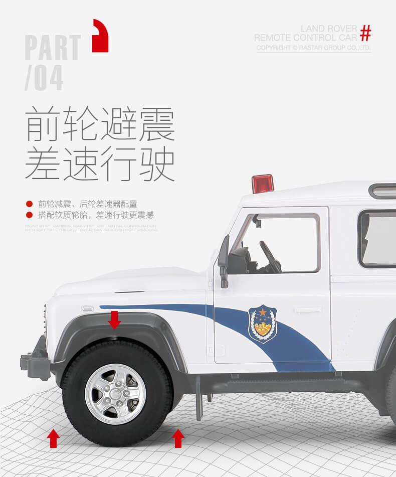 正版授权,还原路虎卫士警车版 电动遥控车 颜色随机