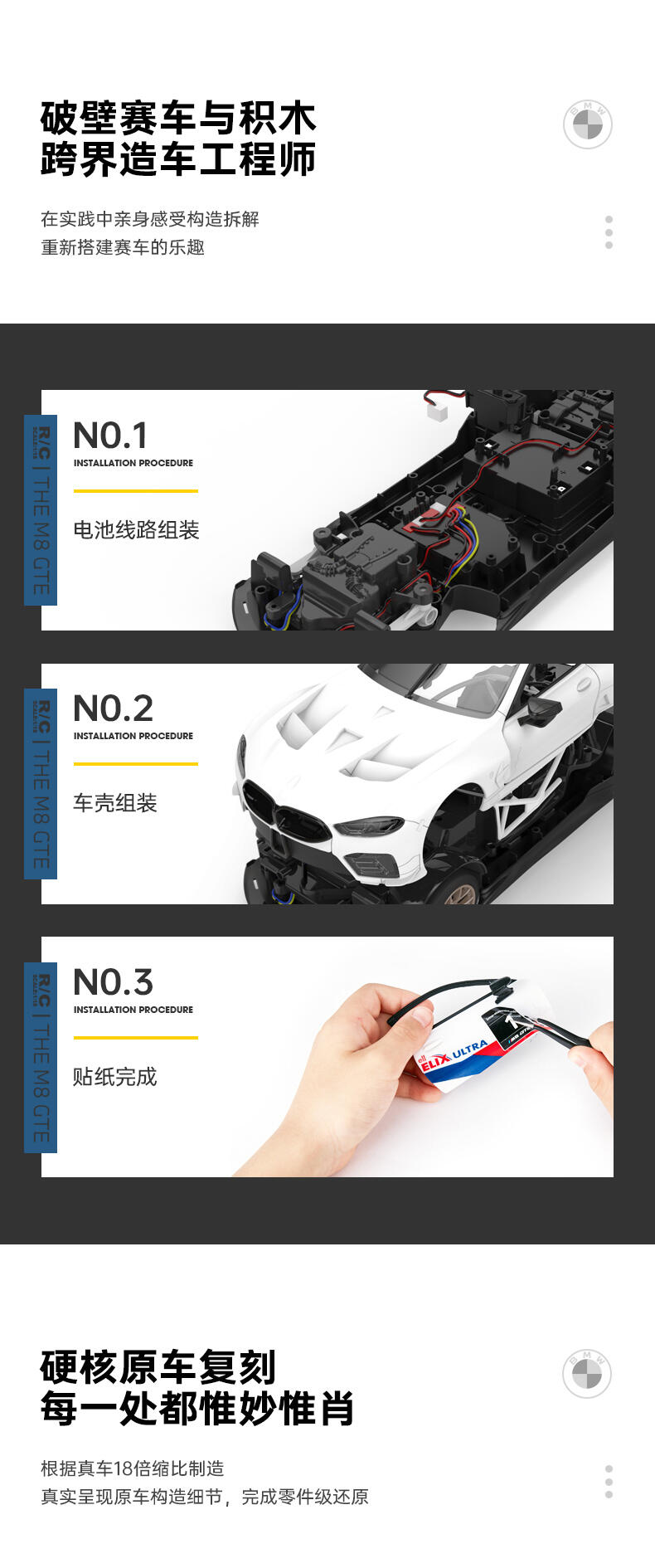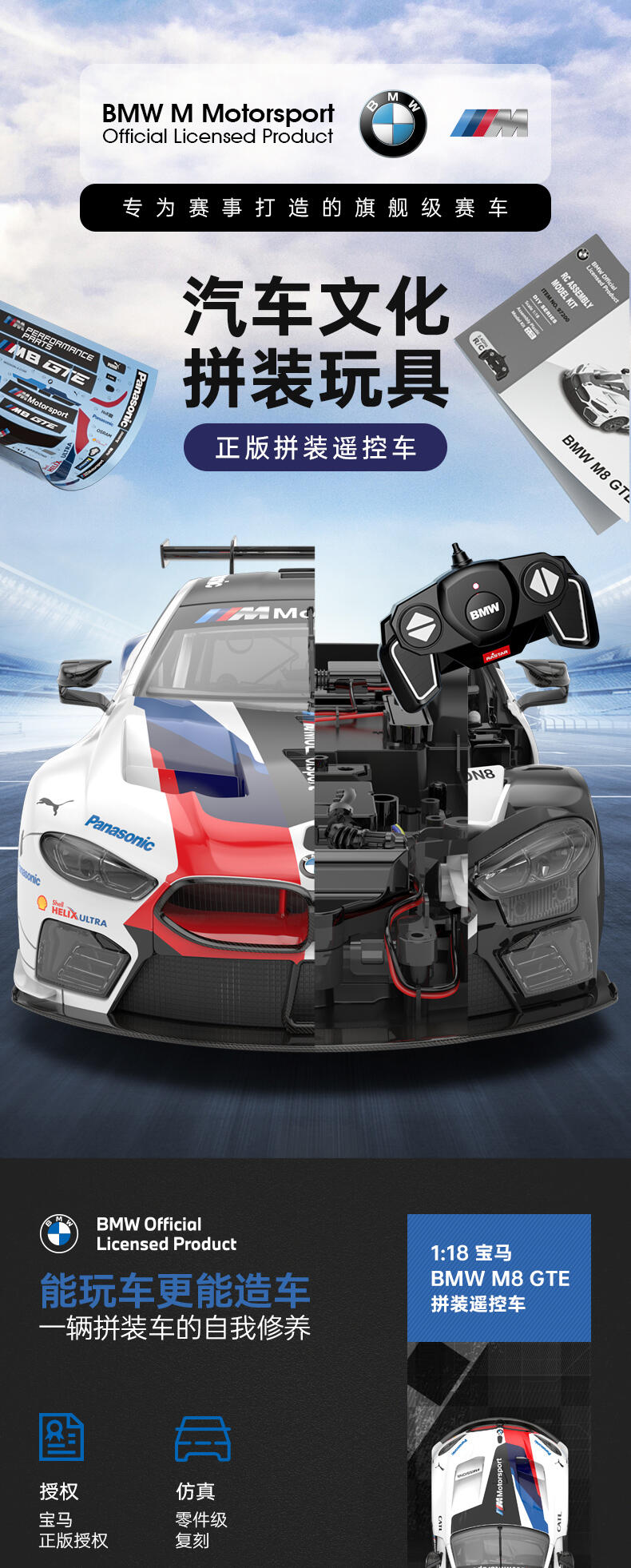 Rastar星辉 R/C 1:18 BMW M8 Gte 拼装遥控车