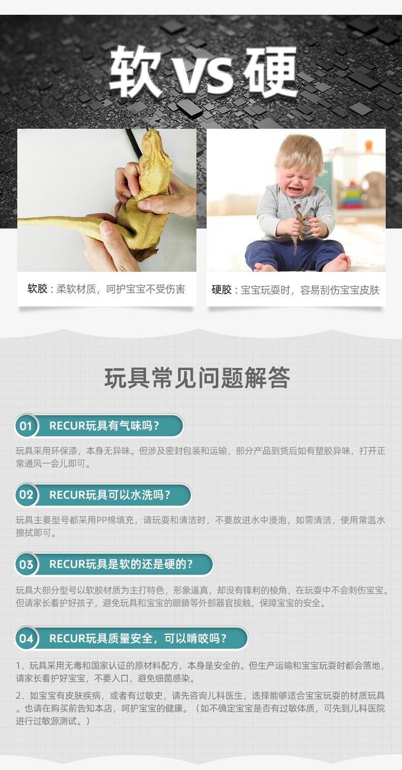 1.科普知识,满足孩子的好奇心,探索大自然。 2.等比例还原,建立正确的认知。 3.原创设计,追求细节,值得小朋友细细把玩及了解认知。 4.ROTO-PVC(简称PVC)柔韧、质感、安全一切都刚刚好。 5.A级PP棉填充,由内而外的安全与品质追求。