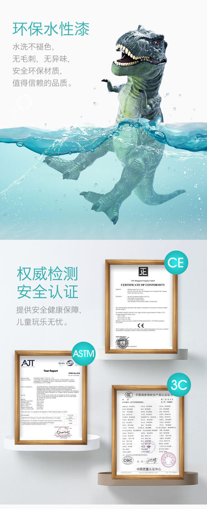 请注意:这个巨大的霸王龙恐龙玩具不适合3岁以下的儿童。不能嚼玩具。