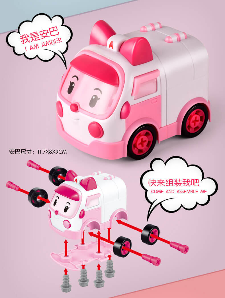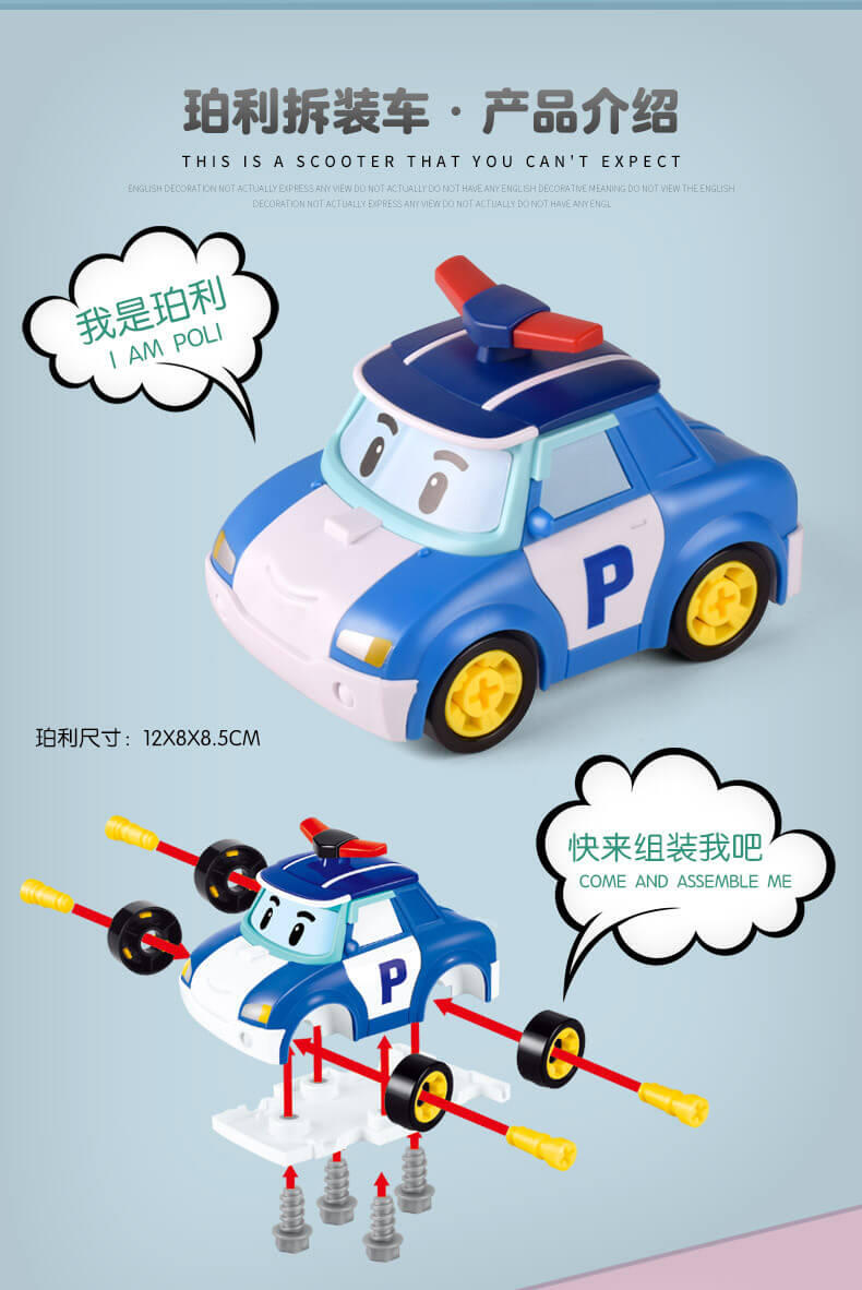 这是一款可拆卸的玩具车,开发孩子的想象力及动手能力。