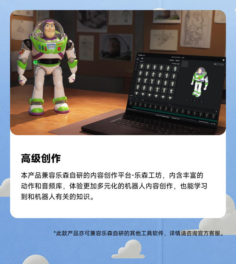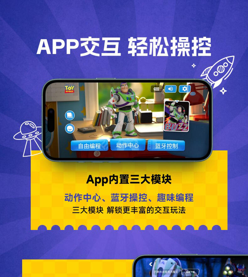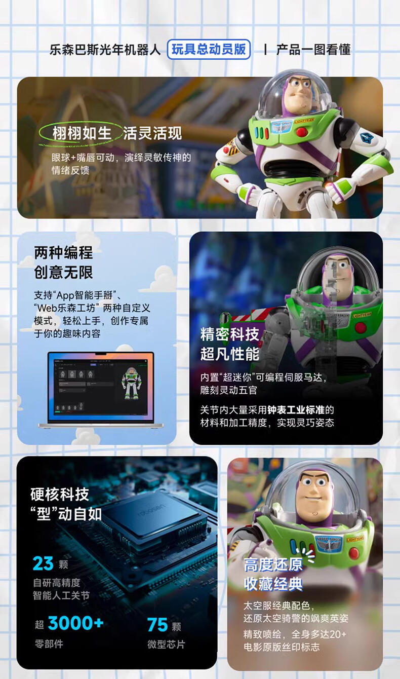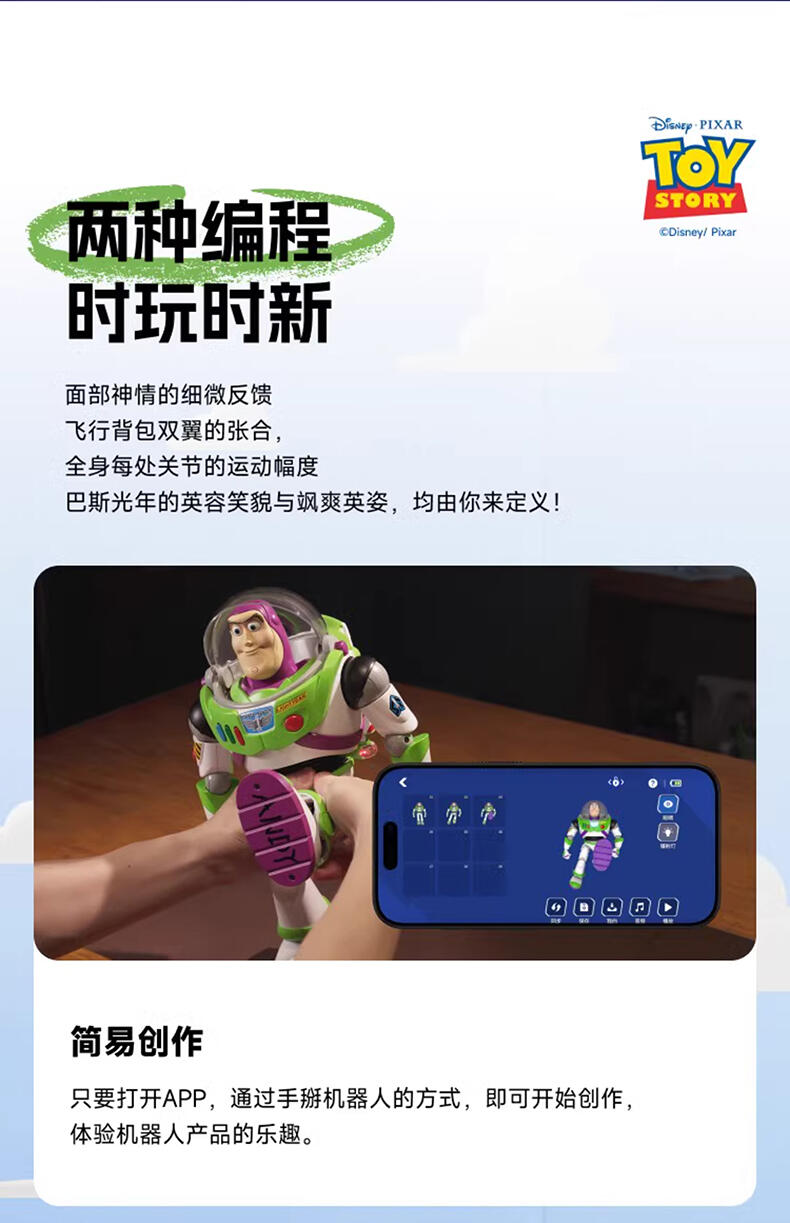 一台有生命的机器人,迪士尼正版授权,首次采用微型舵机,实现嘴巴、眼球可动,全身23个舵机,75颗芯片,型动自如,高度还原,200多中文台词,收藏经典,两种编程模式,时玩时新