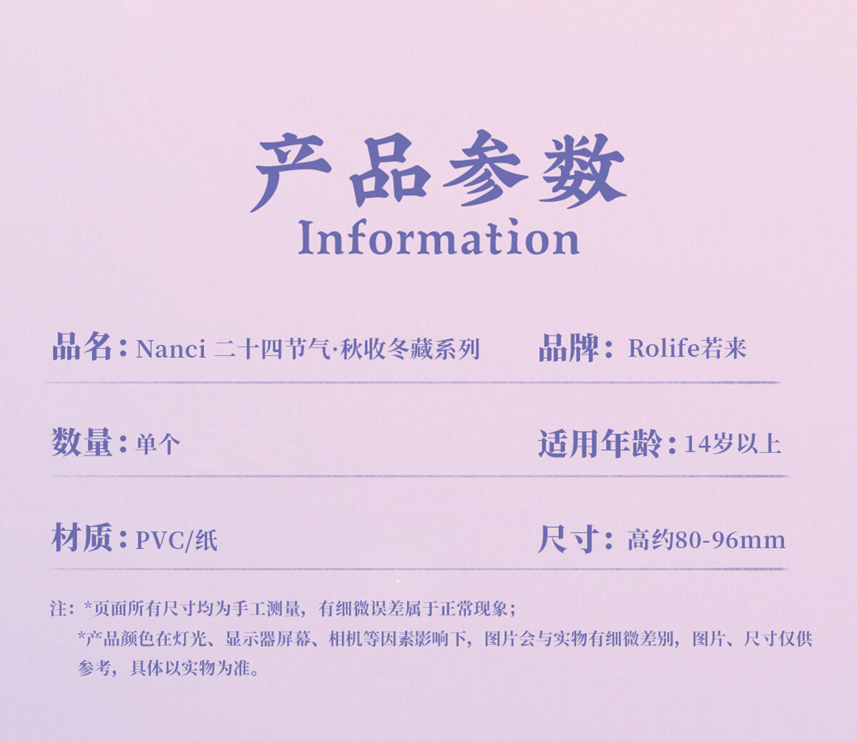 本产品包括不同颜色、款式或人物角色。每个款式单独发售并随机发货。