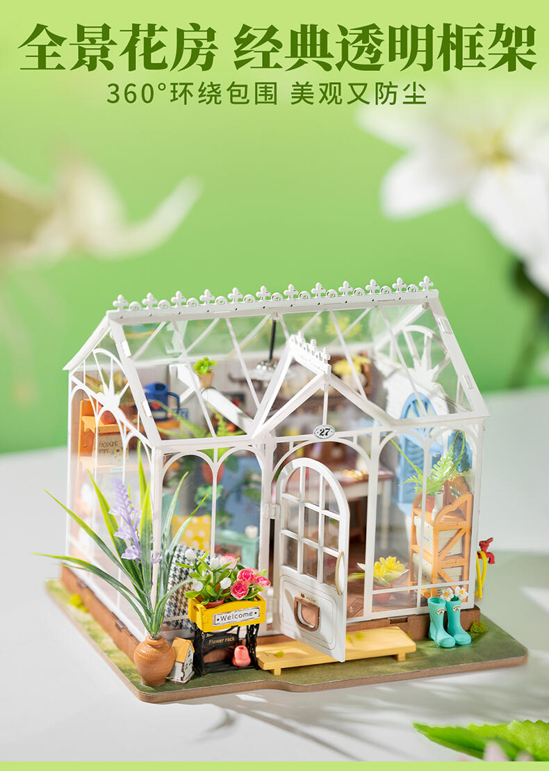 2.全景式,透明花房,PET透明结构,可放常规尺寸盲盒;