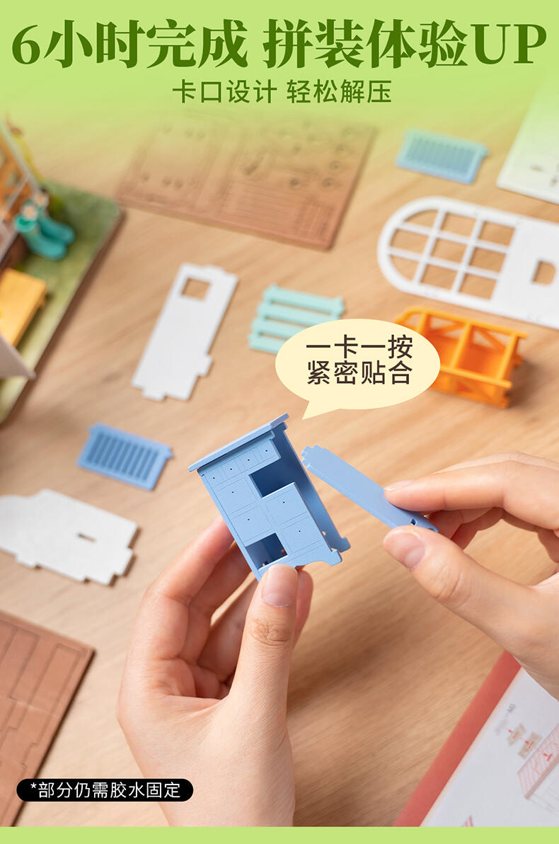 1.拼装体验升级:卡扣结构,稳固易拼,少胶少剪;拼装市场6小时左右。