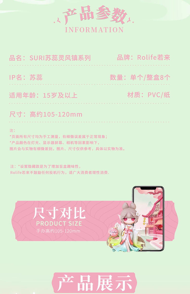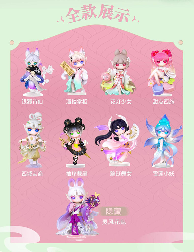 1.主题:苏蕊 灵风镇系列; 2.产品规格:8+1(有8个常规款,1个隐藏款,隐藏生产配比是1:96)