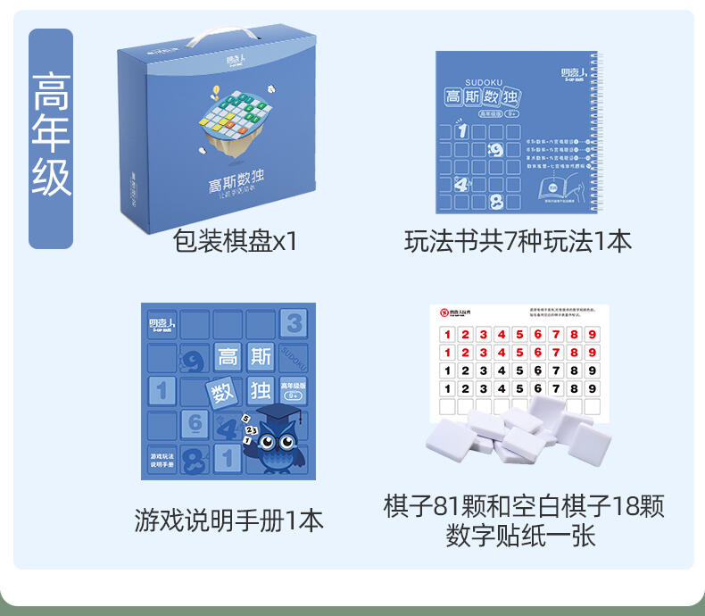 进阶式训练数独-高斯数独高年级版。根据儿童大脑发育阶段科学分阶,考验宝宝逻辑推理能力。游戏丰富,玩法多样。科学训练,难度由浅入深,循序渐进。