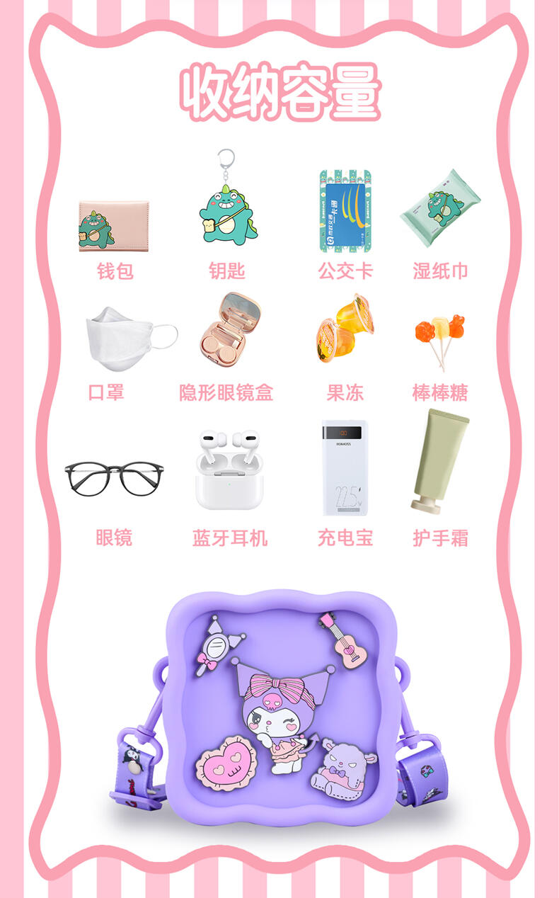1,采用硅胶材质,安全环保无毒,可以做零钱包,耳机包,手机包