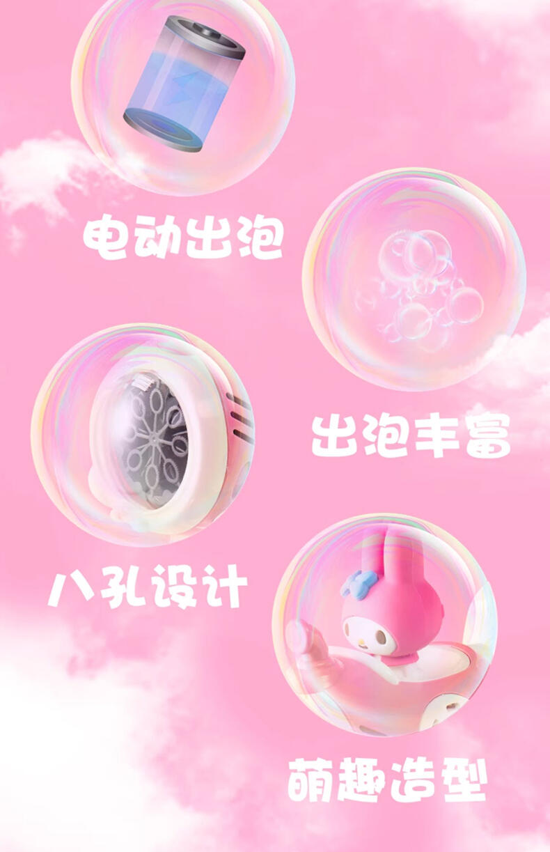 三丽鸥知名品牌的电动泡泡棒,有2种颜色可选,可室内室外玩