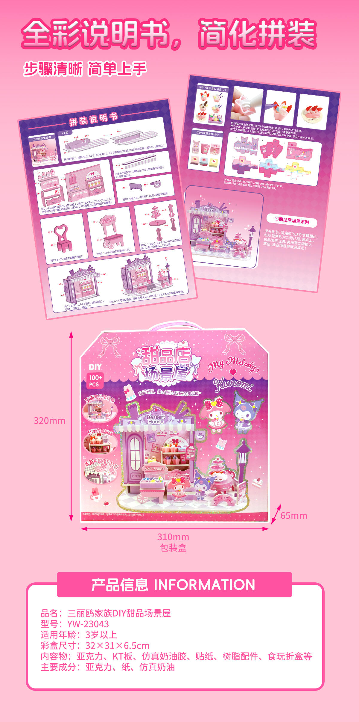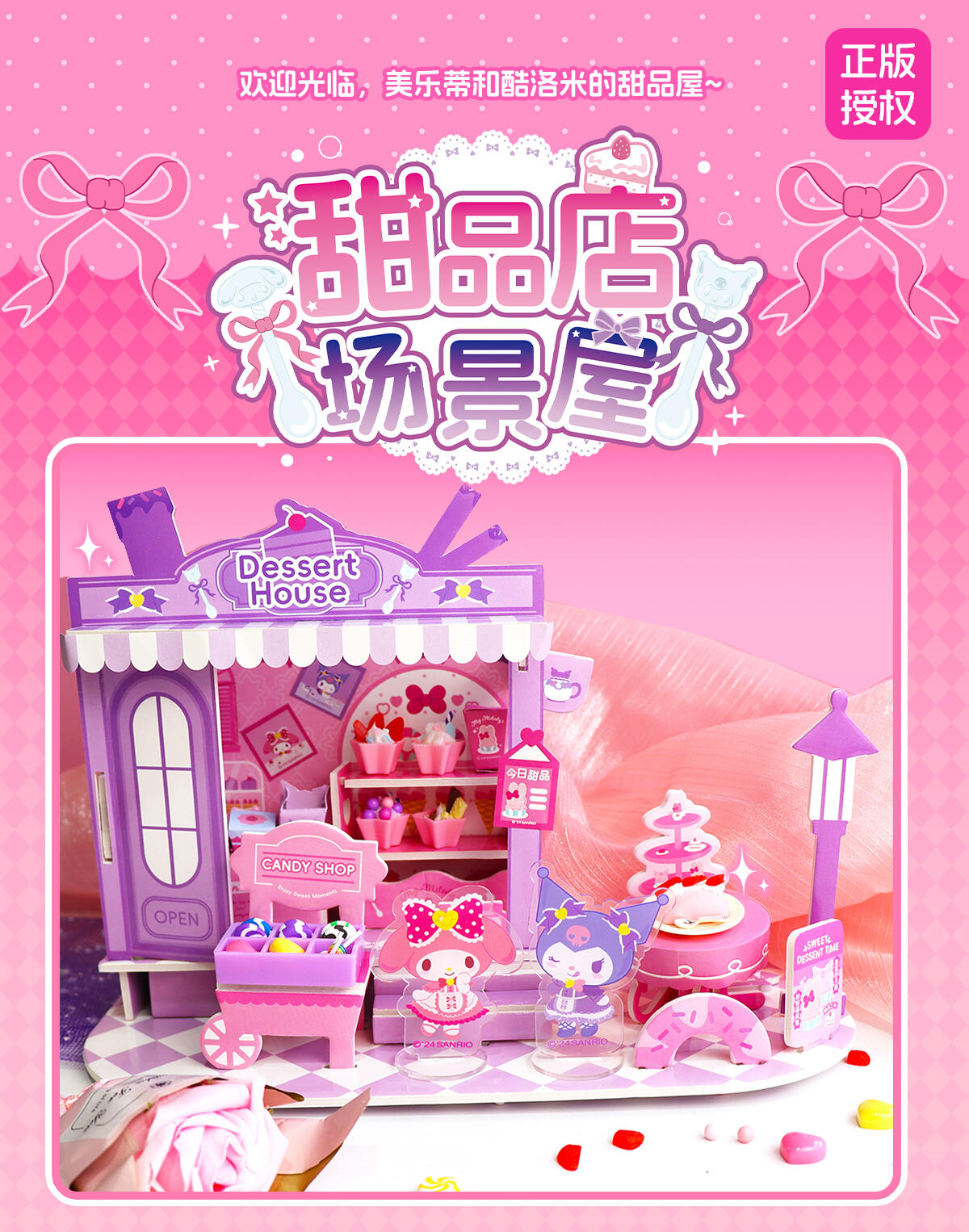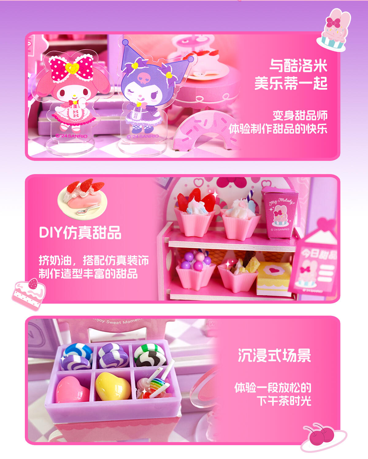 三丽鸥家族下午茶,梦中的甜品小屋 丰富食玩多层立体场景 多样拼搭DIY材料 超大手提礼包
