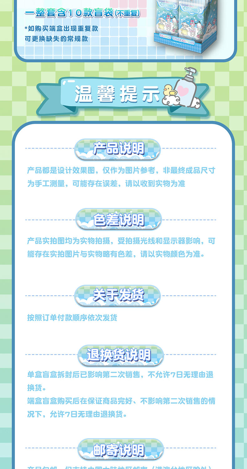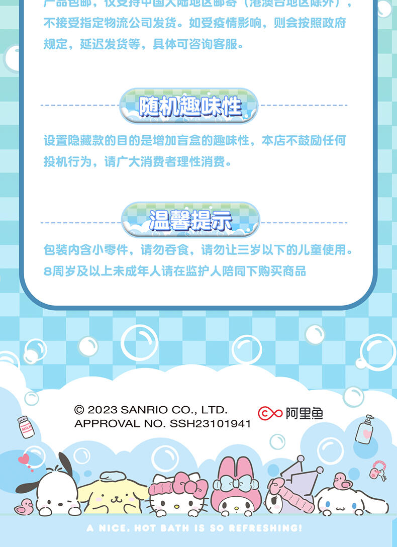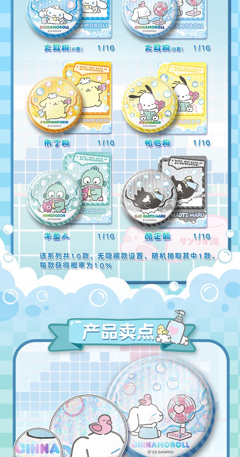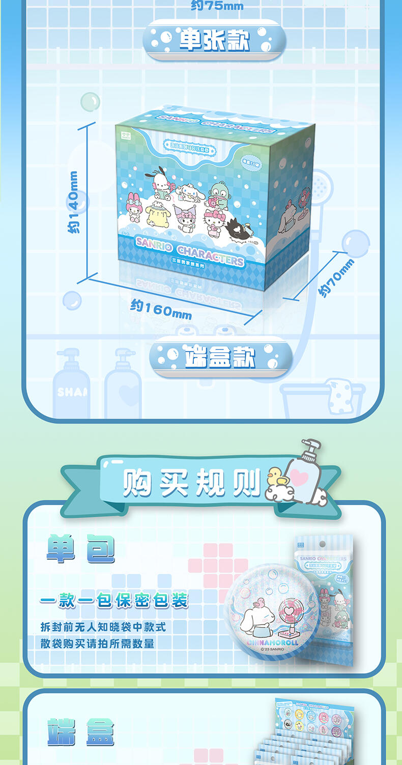 1、浴室里形态各异的三丽鸥角色们,配合清新可爱的颜色; 2、多种工艺,收藏感十足;