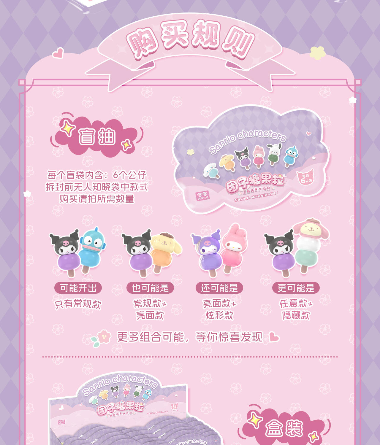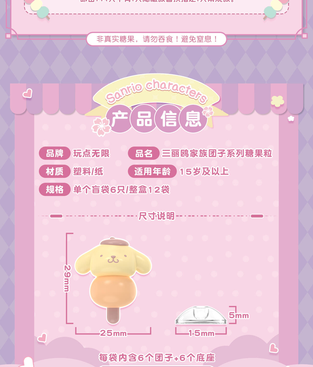 1、团子造型三丽鸥软萌可爱的形象; 2、 创意堆叠,趣味解压; 3、 桌面摆件,小巧便携